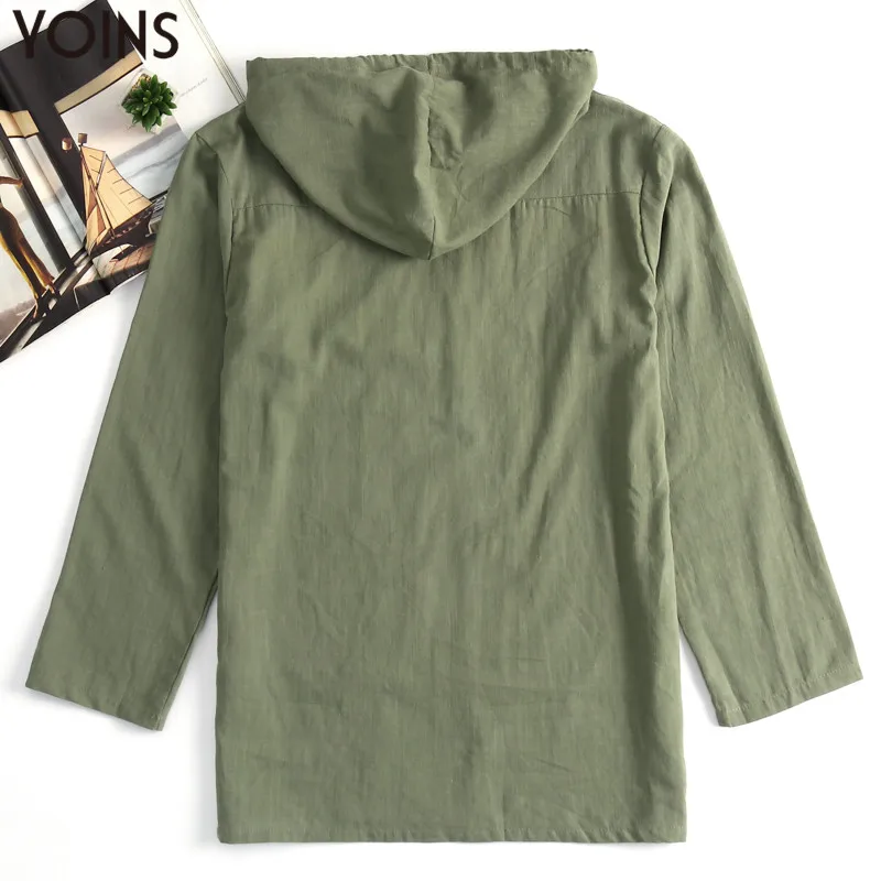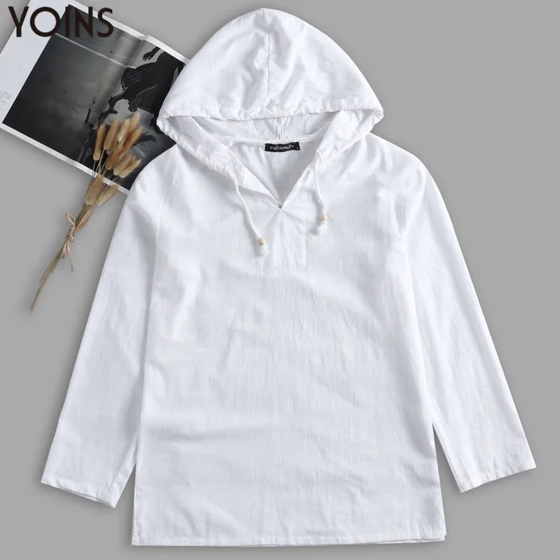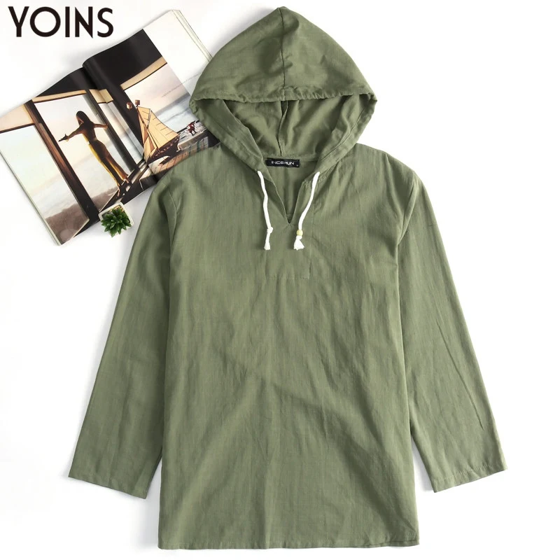 YOINS повседневная мужская рубашка с капюшоном и длинным рукавом, хлопковые однотонные винтажные рубашки, мужские уличные топы, camisa masculina, S-3XL, осень 2020