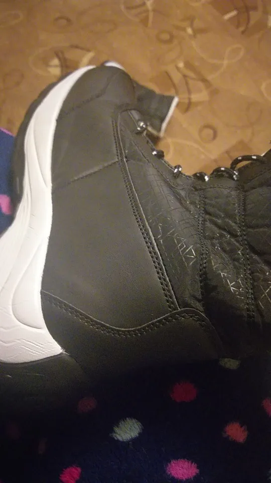 Милые ботинки, но меньше, чем я ожидала (я получил на размер больше, чем обычно). Очень легкий, но, думаю, довольно теплый. Один разочарованный дефект-большое черное пятно, которое я не мог вымыть. Выглядит слишком смело на белом, поэтому я немного разочарован.