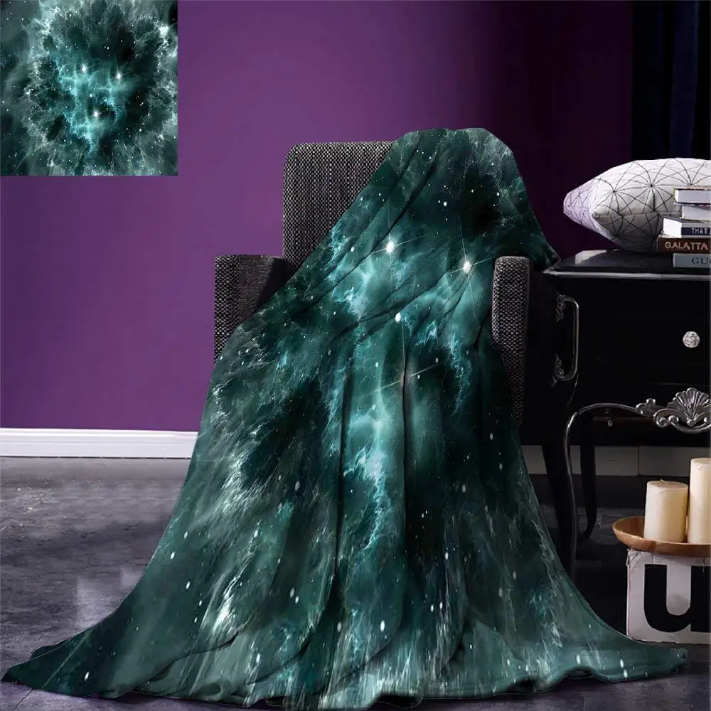 Теплое одеяло из микрофибры с изображением космической туманности с кристаллами звезд, кластеров, солнечной системы, космоса