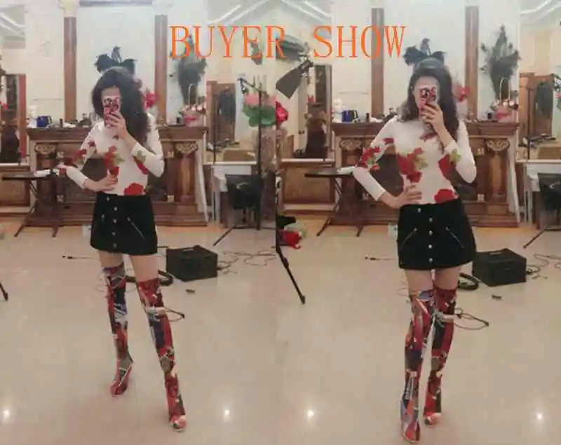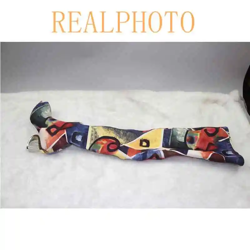 Женские ботфорты стрейч REAVE CAT, осенне-весенние разноцветные ботфорты на прозрачном каблуке