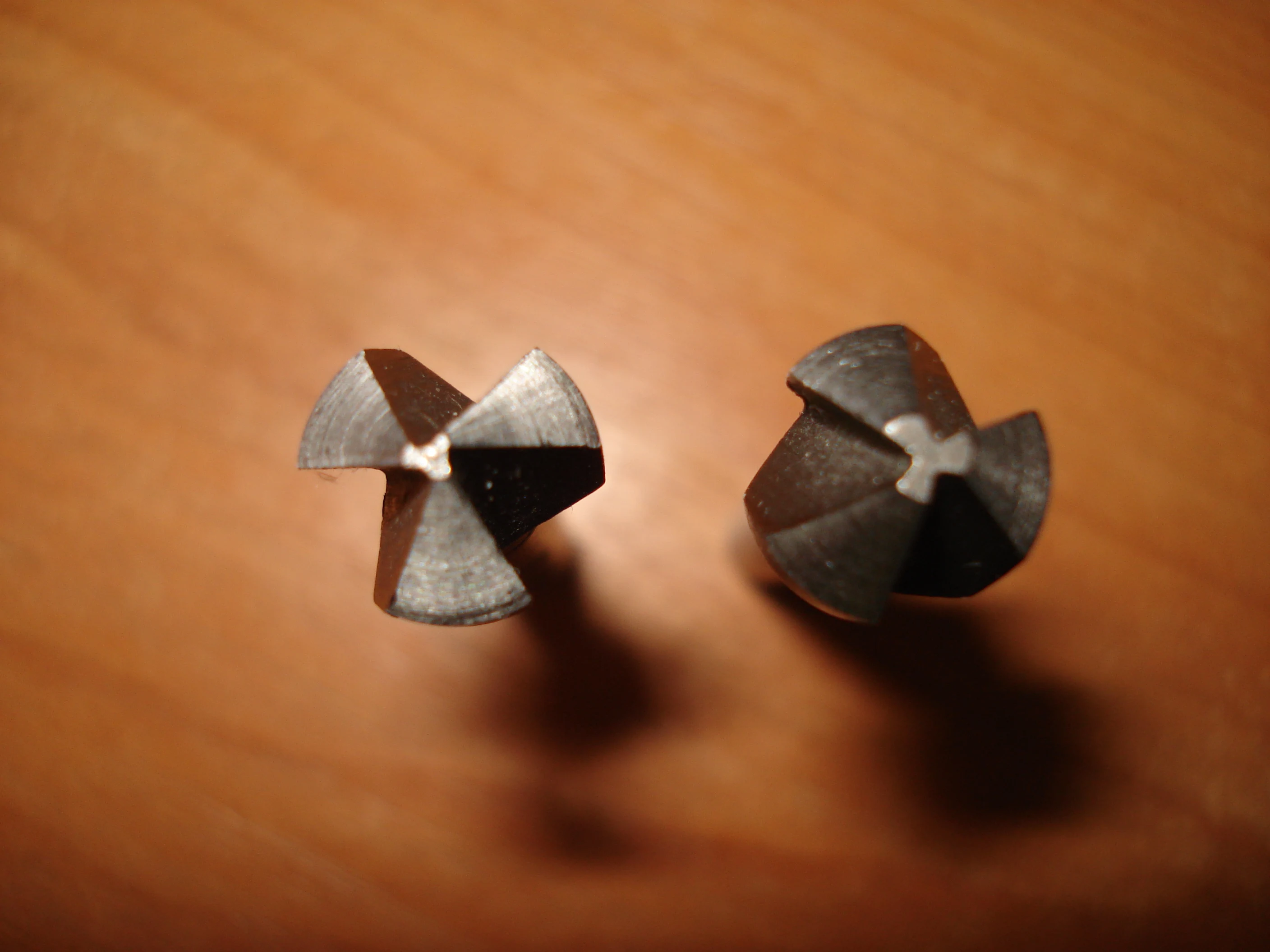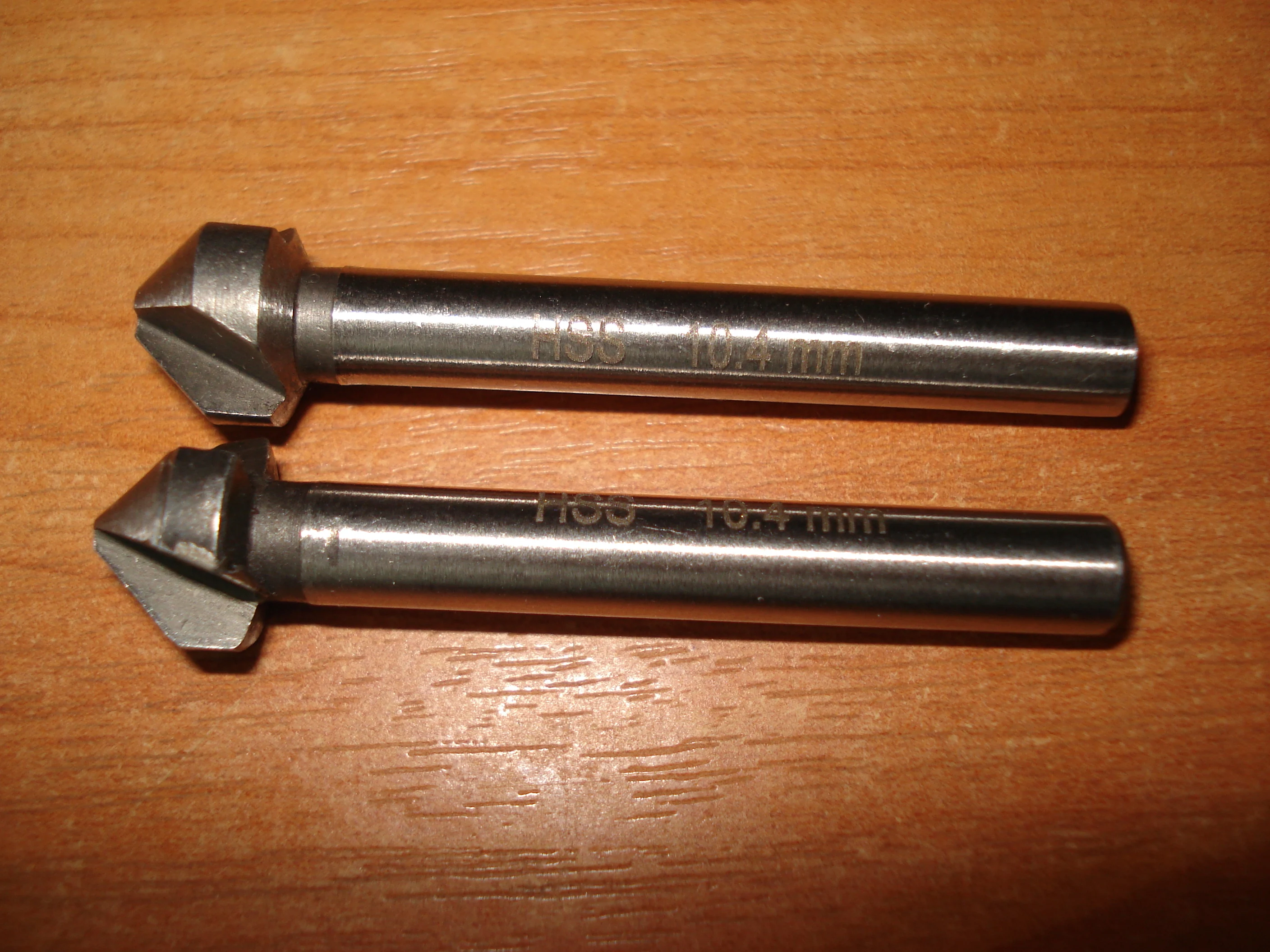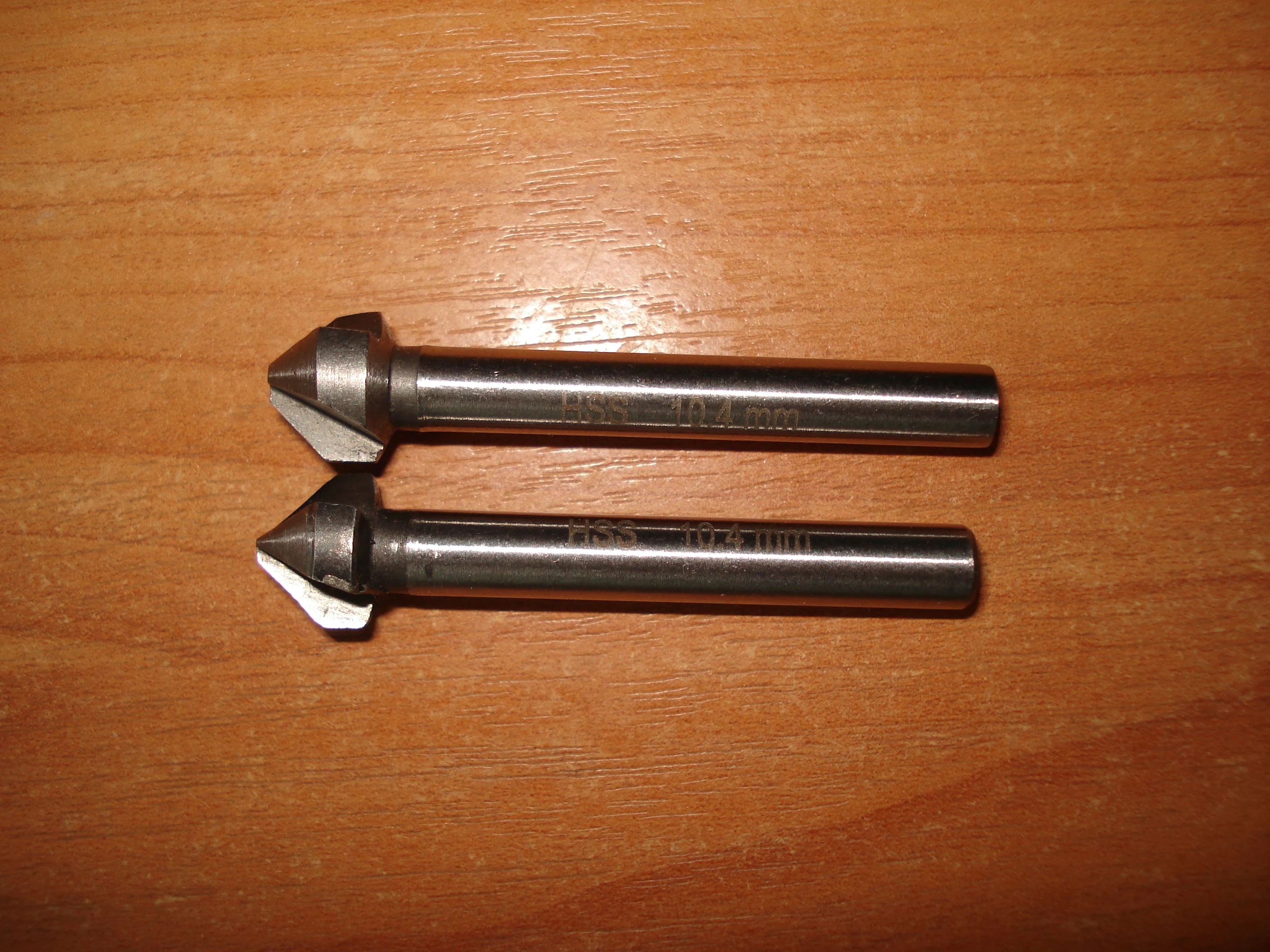 10,4 конус сточен по-разному у двух зенковок. у одной почти острый нос, у второй плоский 2мм диаметром хоть ставь стоймя. брал для алюминия - посмотрим... есть идея нагреть горелкой с балончика до красна и охладить в высокотемпературном цилиндровом масле ц-50 . может закалится.