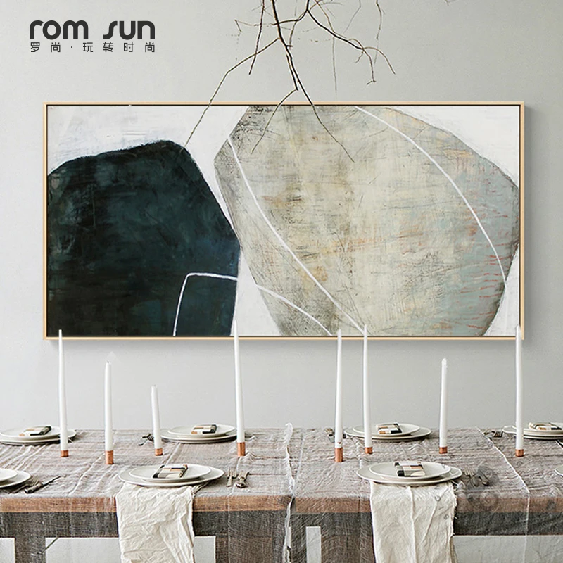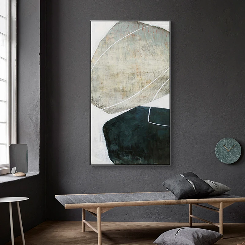 Нордический минималистский черный и белый камень, холст, серый плакат, печать, большая настенная живопись для отеля, прохода, гостиной, Декор