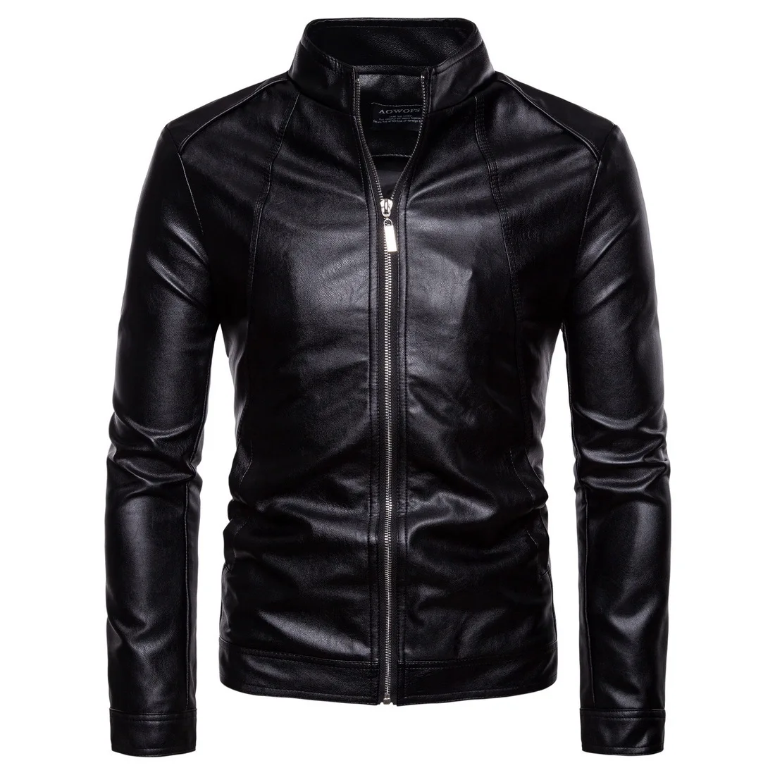 Куртка мужская из искусственной кожи на молнии с воротником-стойкой