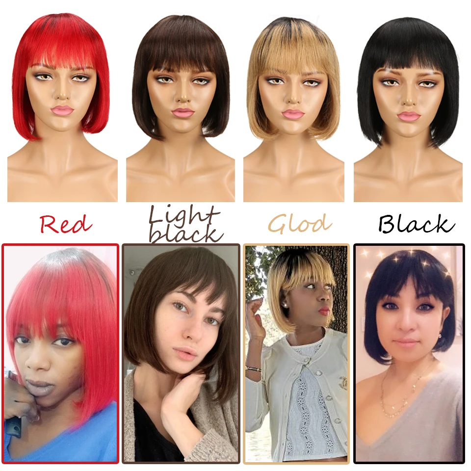 Гладкий короткий парик Боб, парики Remy из человеческих волос с челкой, бразильский короткий светлый красный синий парик фальшивой резки для женщин, Быстрая США, Франция