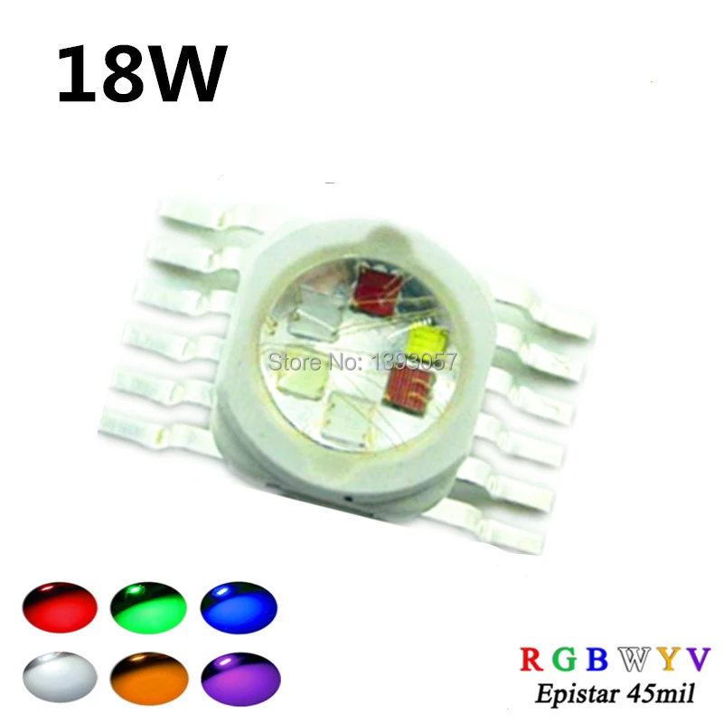 Сценический свет, суперъяркий, 18 Вт, RGBWYV, 45 мил, все цвета, 12 контактов, 18 Вт, красный, зеленый, синий, белый, желтый, фиолетовый светодиод, 1 шт.