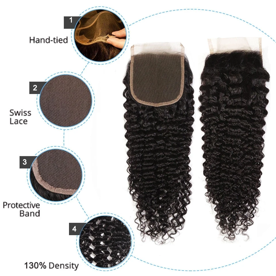 Малайзийские кудрявые пряди с закрытием, кудрявые человеческие пряд...