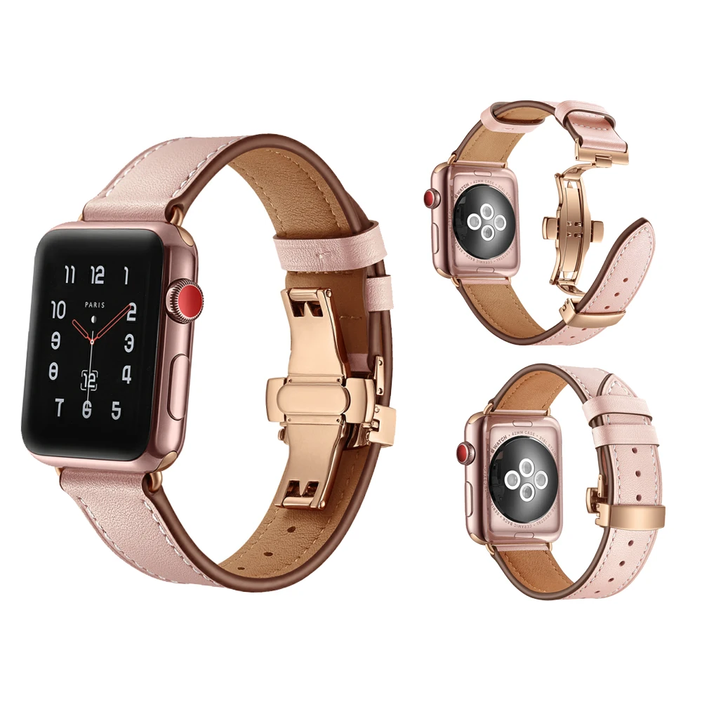 Ремешок для часов, кожаный, с застежкой-бабочкой, для Apple Watch 3...