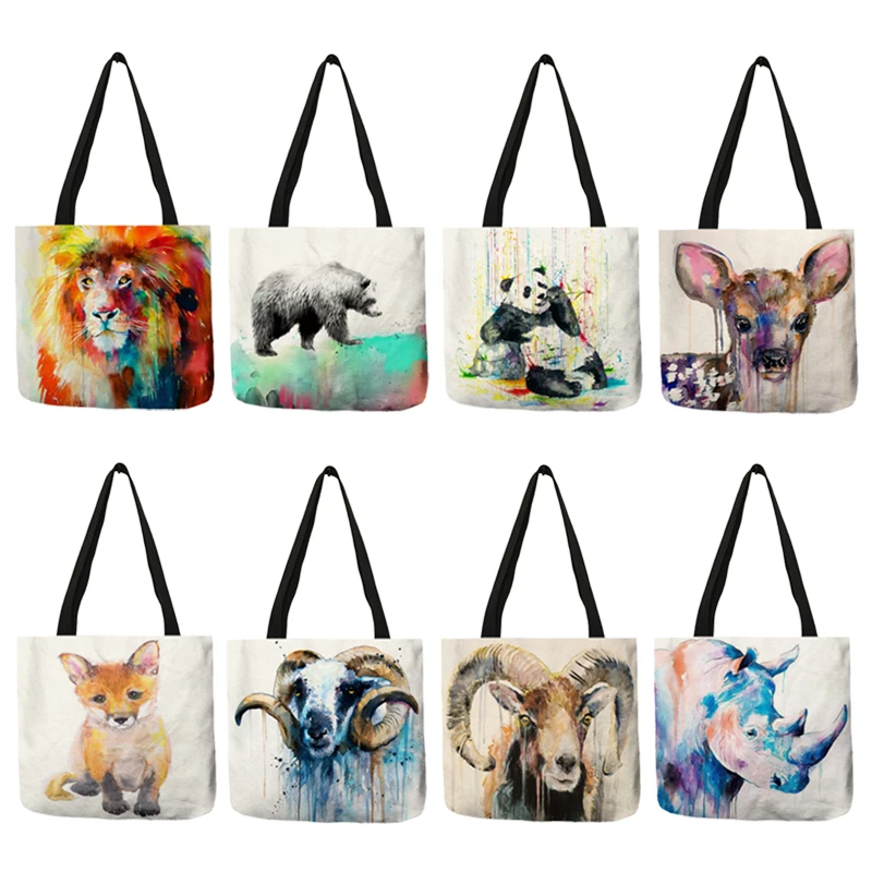 Индивидуальная Акварельная Сумка-тоут с животным принтом для женщин, студенток, девушек, уникальные школьные сумки, дорожные пляжные сумки, складные сумки