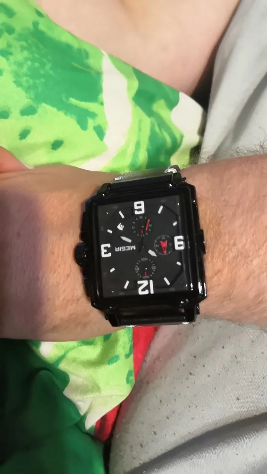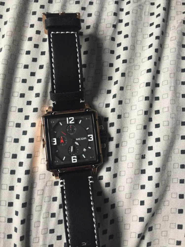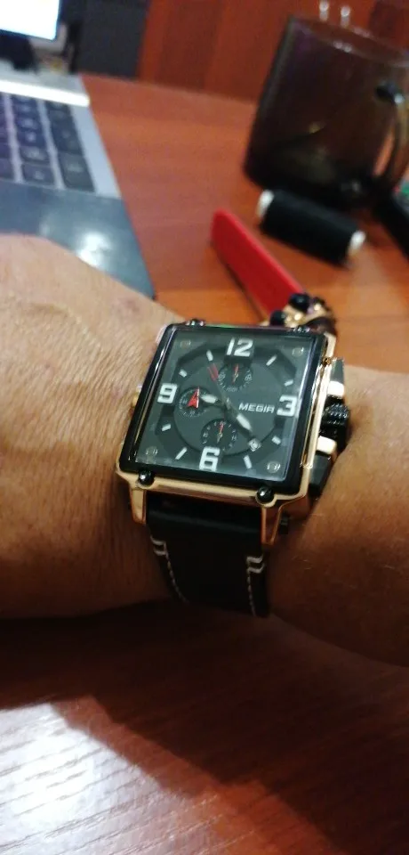 Особенности: - Оригинальные часы MEGIR из официального магазина MEGIR; - 100% новые, с биркой и гарантией качества; - водонепроницаемость до 3 АТМ (Вы можете использовать их во время дождя или при мытье рук, но избегайте попадания горячей воды и не носите во время плавания); - С хронографом (секундомером), функцией подсветки, показом даты и времени (в 24-часовом формате); - креативный дизайн и высококачественные материалы от MEGIR . Спецификации: - Товар: мужские часы - Бренд: MEGIR - Модель: MEGIR 2061 - Тип часов: кварцевые часы / мужские часы / часы для мужчин - Функции: хронограф, секундомер, свечение, календарь (дата), водонепроницаемость - Материал корпуса: сплав - Материал ремешка: кожа Параметры: - Диаметр корпуса: около 41*55 мм - Толщина корпуса: около 14 мм - Длина ремешка (максимальная носимая длина): около 225 мм - Ширина ремешка: около 24 мм Что входит в комплект: - 1 х часы Megir - 1 х оригинальная коробка часов Megir - 1 x руководство пользователя с гарантийным талоном