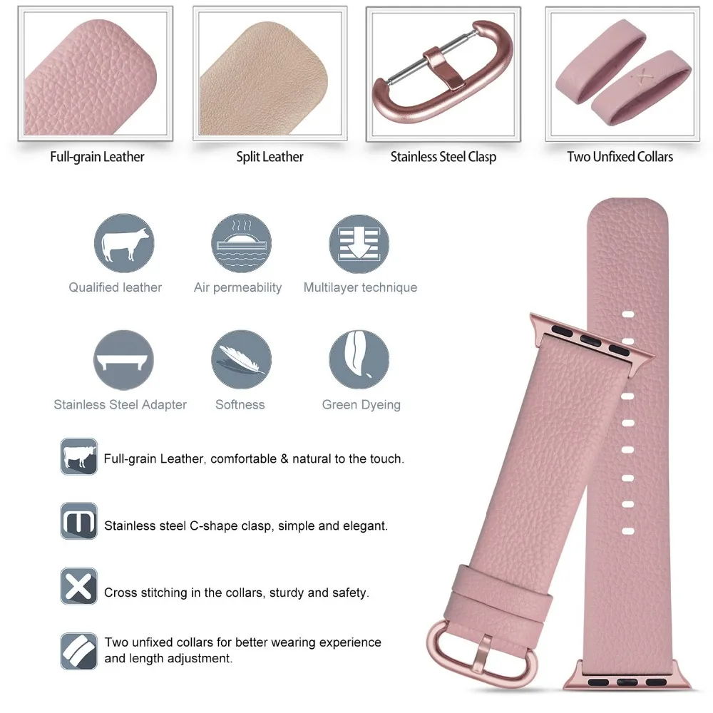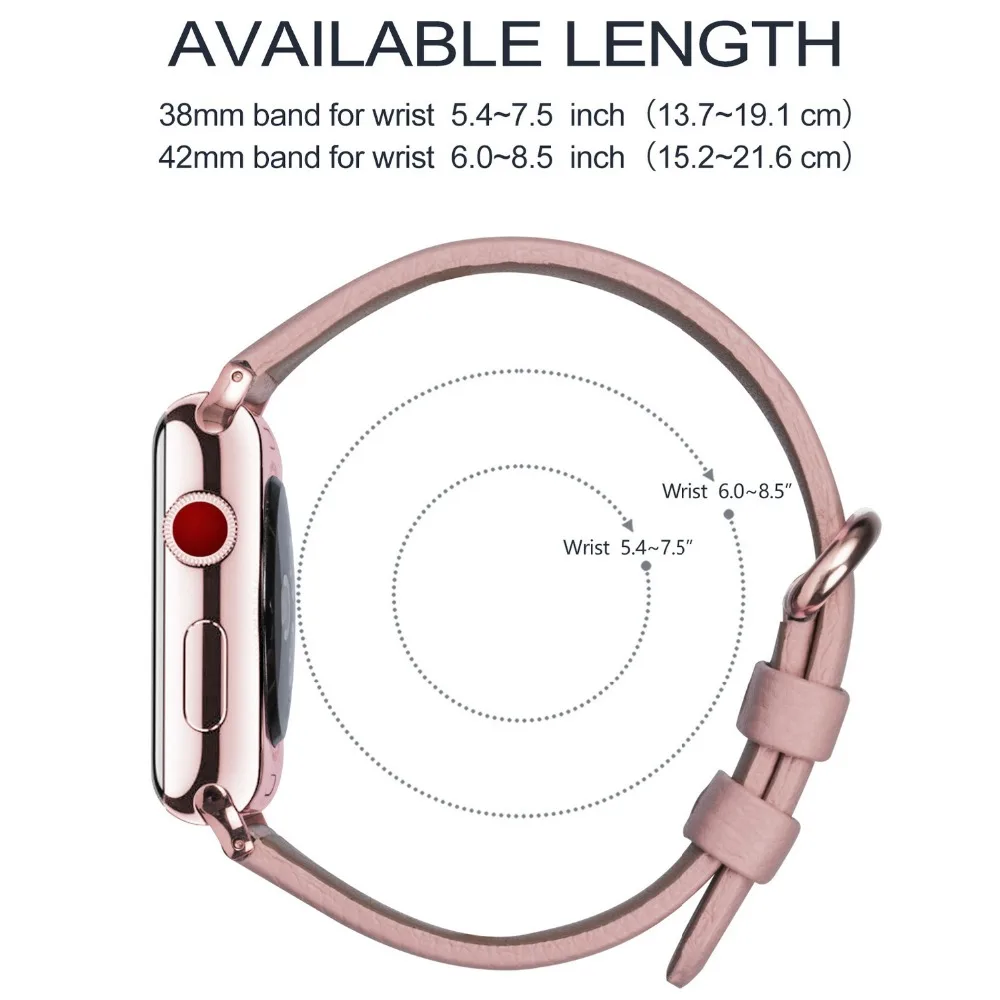 Розовый ремешок для Apple Watch 38 мм 42 мм, 16 цветов, кожаный ремешок для часов Apple Watch для женские пряжки iWatch серии 4 и 3 и 2 и 1, ремешок для часов