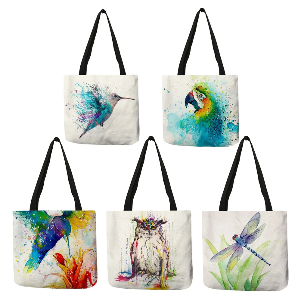 Акварельные животные искусство Льняная сумка-тоут с принтом многоразовые сумки для покупок для продуктов повседневные модные сумки для женщин