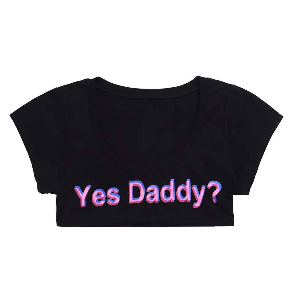Женские вечерние Клубные Топы с коротким рукавом Yes Daddy, модные тянущиеся хлопковые кроп-топы, летние сексуальные Клубные короткие футболки