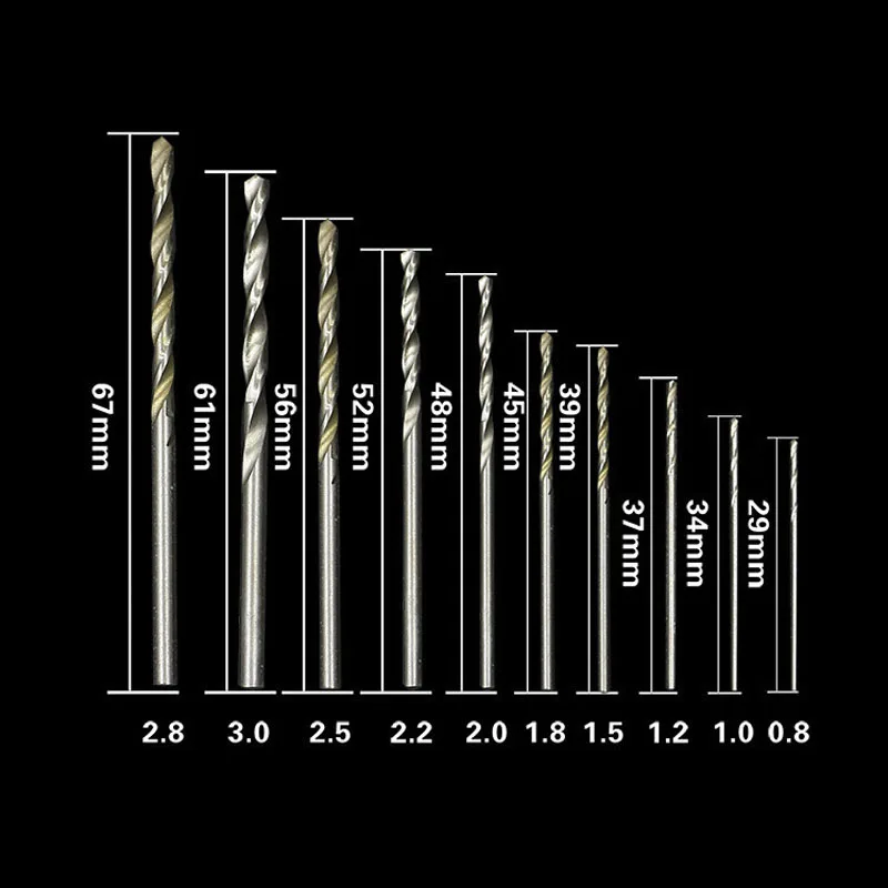 Кобальтовое спиральное сверло с прямым хвостовиком, 1/1,5/2/2,5/3 мм, 10 шт./компл.