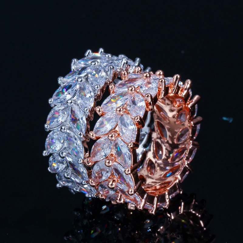CWWZircons Роскошные кубические циркония Проложить Оливковый лист большие обручальные кольца из розового золота CZ ювелирные изделия для женщин R109
