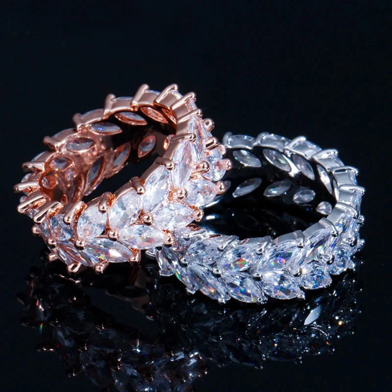 Женские обручальные кольца CWWZircons, роскошные обручальные кольца цвета розового золота с фианитом в форме оливкового листа, ювелирные изделия для женщин, R109
