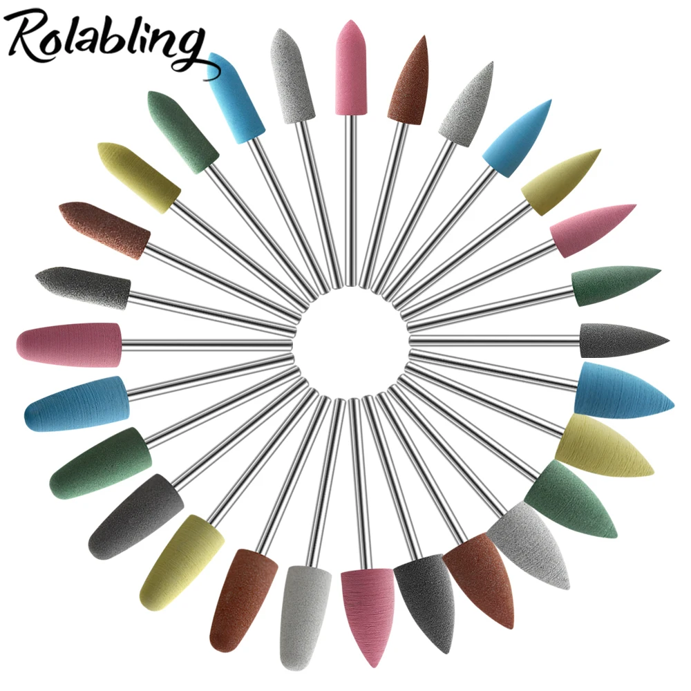 Ролинг 28 типов резиновых силиконовых фрез для ногтей фрезеровка инструменты для полировки буферы для ногтей Аксессуары для маникюрной дрели