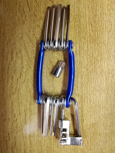 Набор инструментов может быть полезен для вашей цели, но он не складывается должным образом. Он не имеет достаточно качества, чтобы носить его в рюкзаке велосипеда.