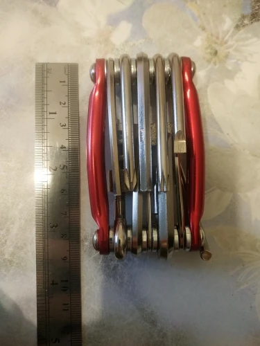 Присылает не то что на изображении, ручка выжимки цепи болтается как хер в рукомойнике, ещё не выжимал но думаю не выдержит и сломает шпильку на которой висит, сам мультитул больше и тяжелее чем тот что изображён, сам материал хз хуже или нет чем у оригинала