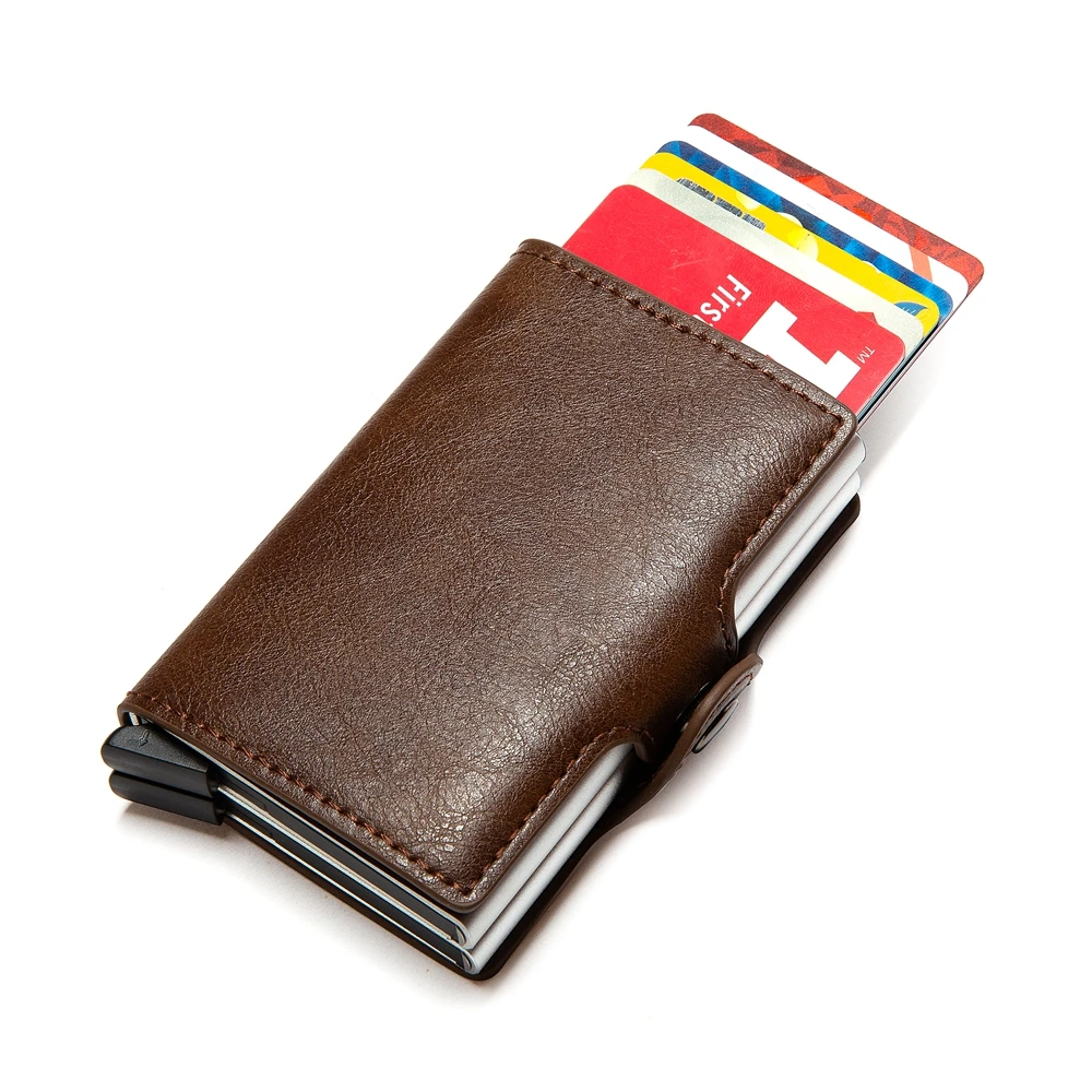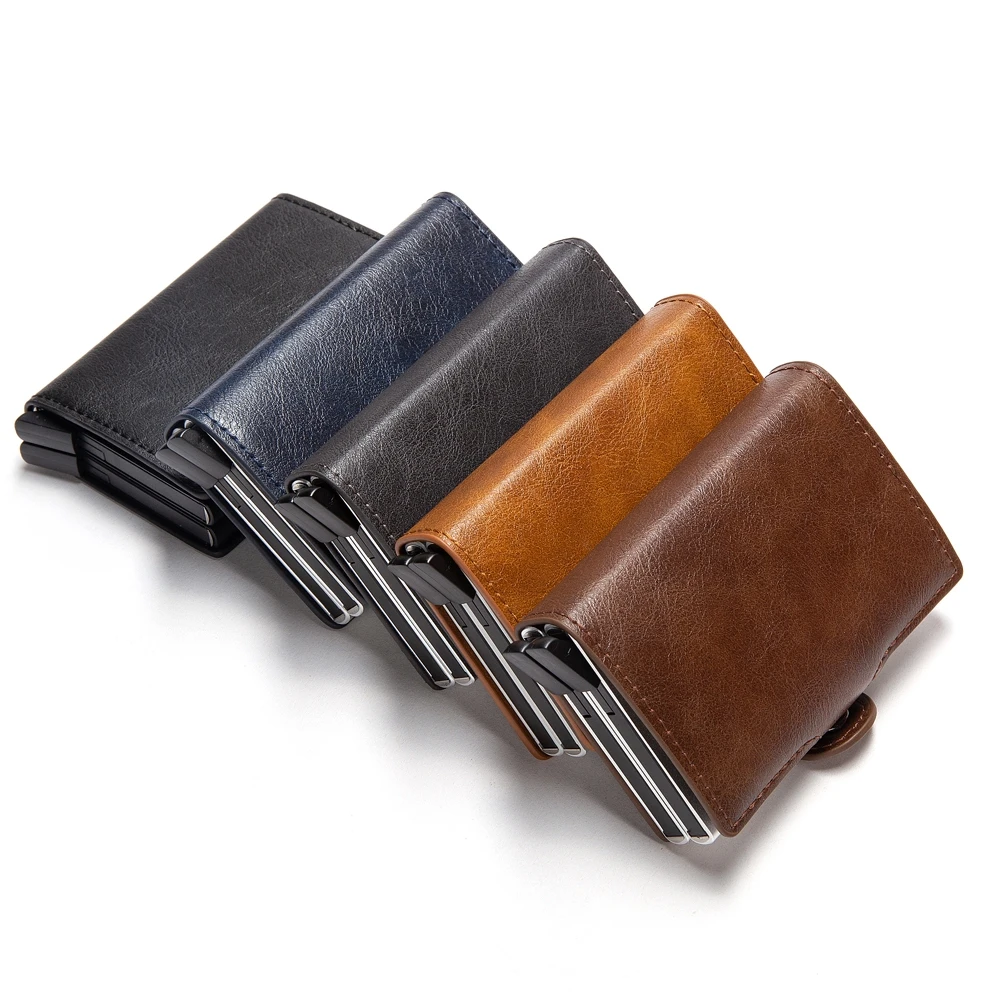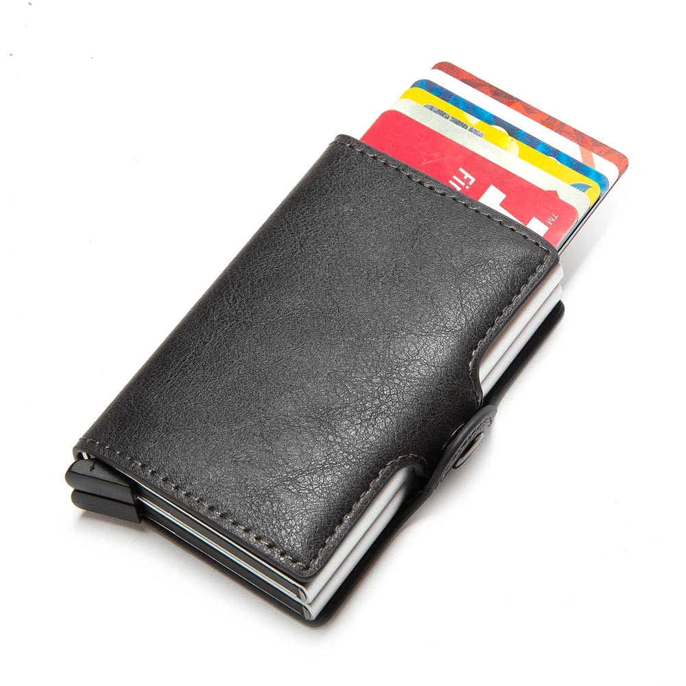 Bycobecy 2021 держатель для карт, кошелек с RFID-блокировкой, двойной металлический футляр, алюминиевая кожаная визитница, чехол, кошелек