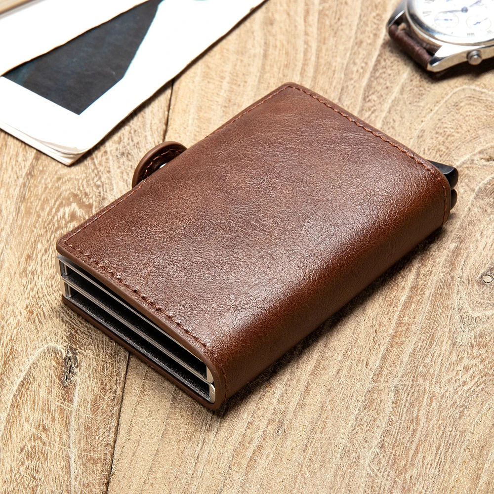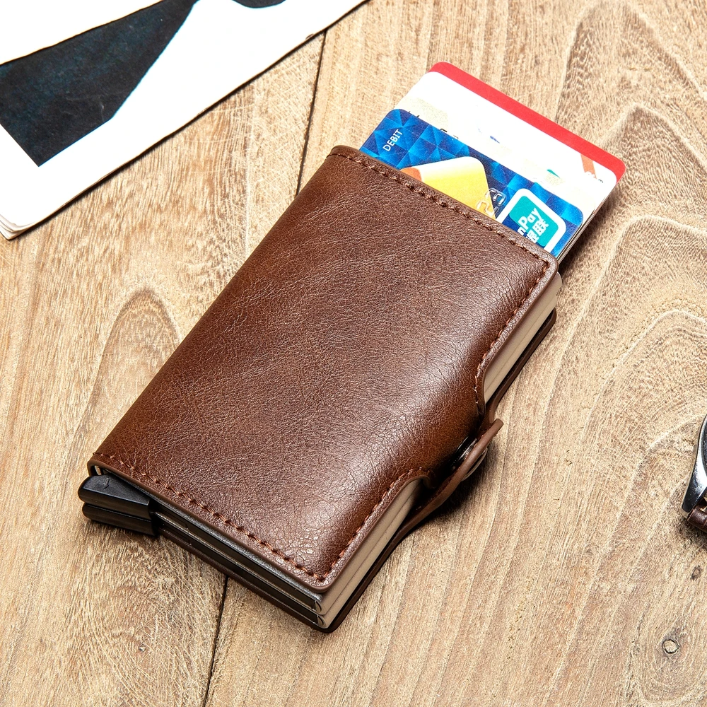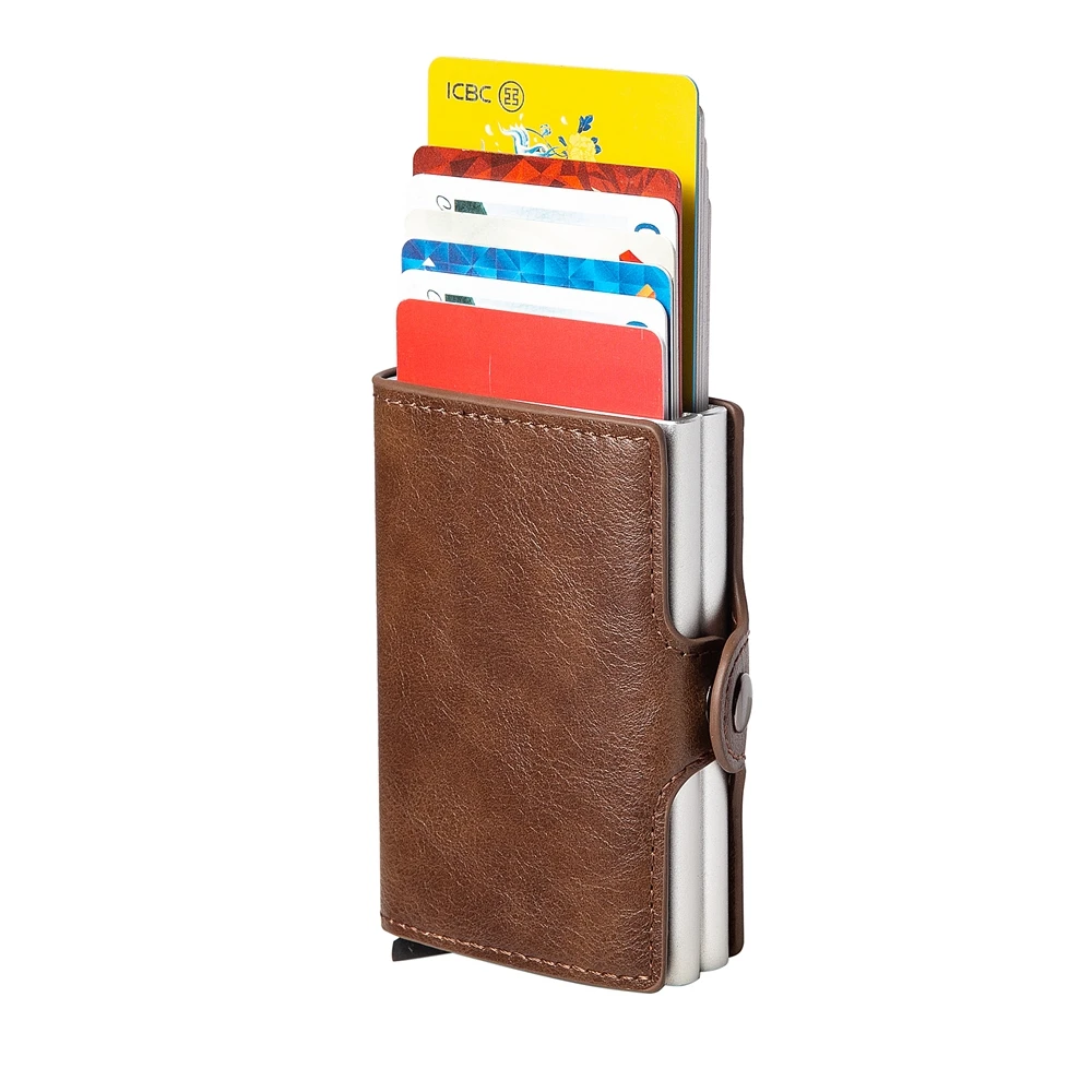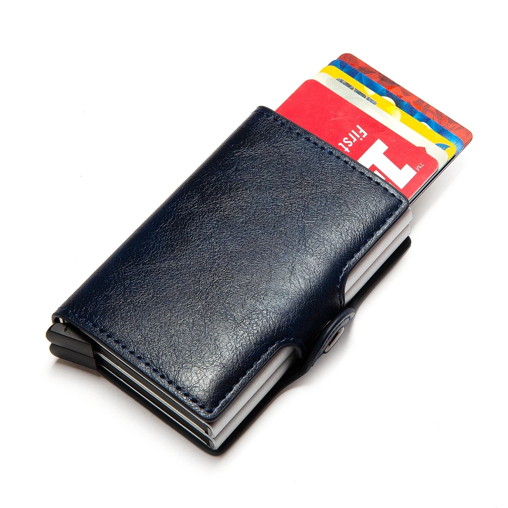 Bycobecy 2021 держатель для карт, кошелек с RFID-блокировкой, двойной металлический футляр, алюминиевая кожаная визитница, чехол, кошелек