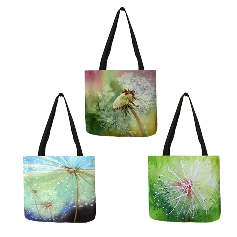 2018 модные сумки для женщин Эко льняной мешок для покупок с принтом одуванчика школьные сумки для путешествий