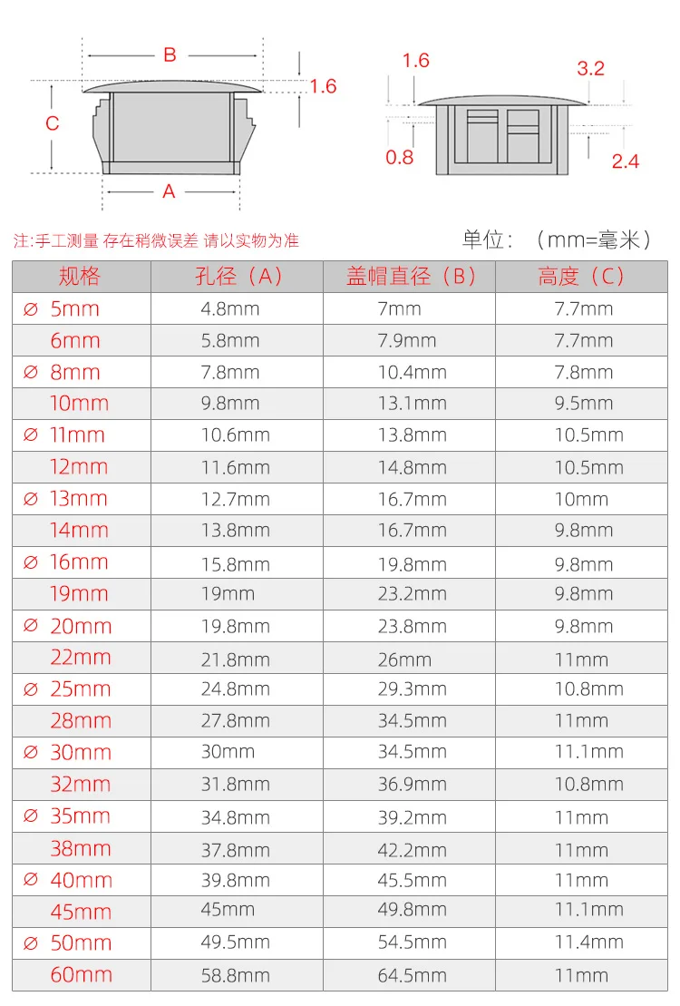 24 пары, черная пластиковая круглая трубка Заглушка с отверстиями, крышка для трубы 5681013141619202225303538404550 мм белый