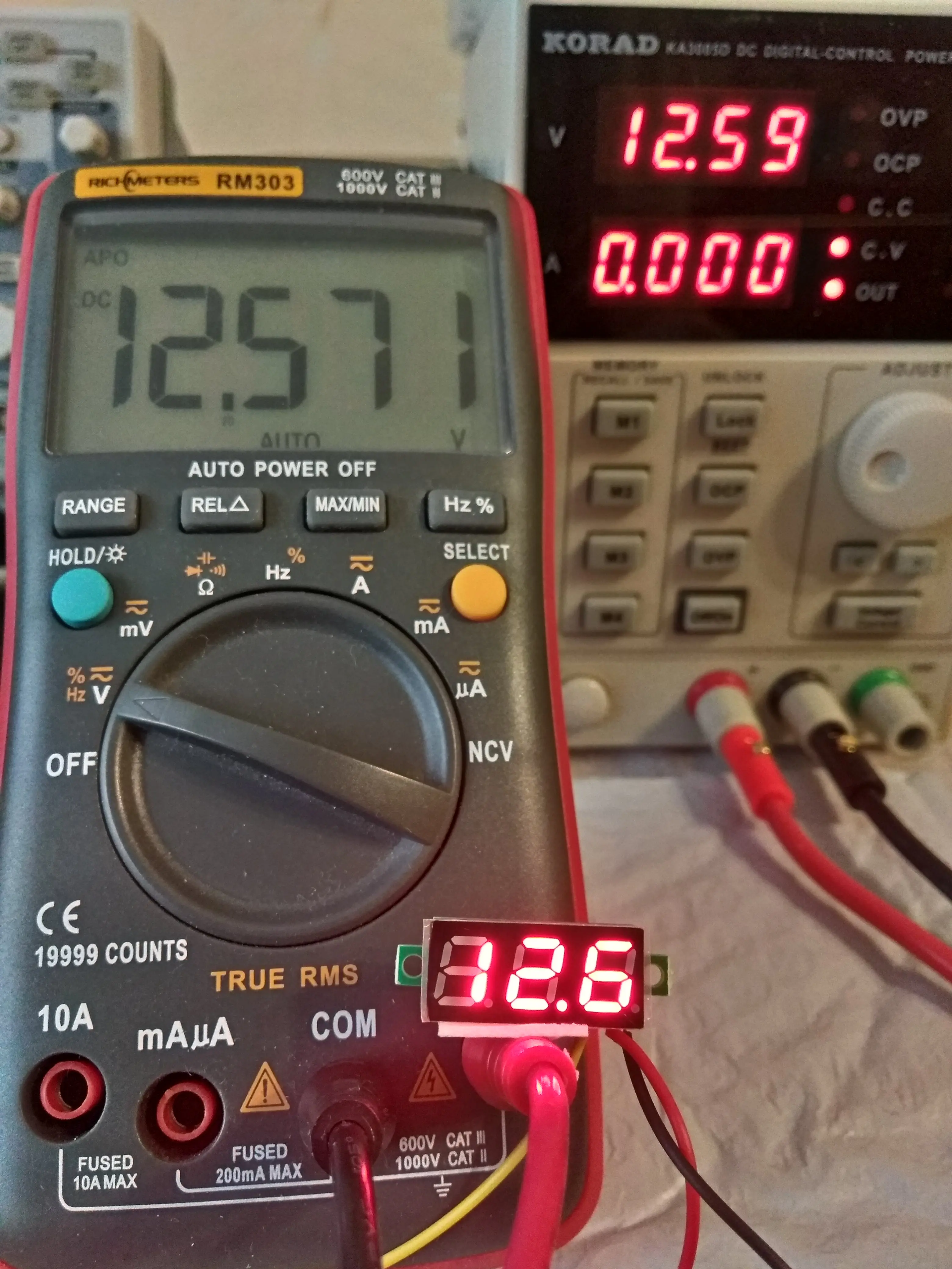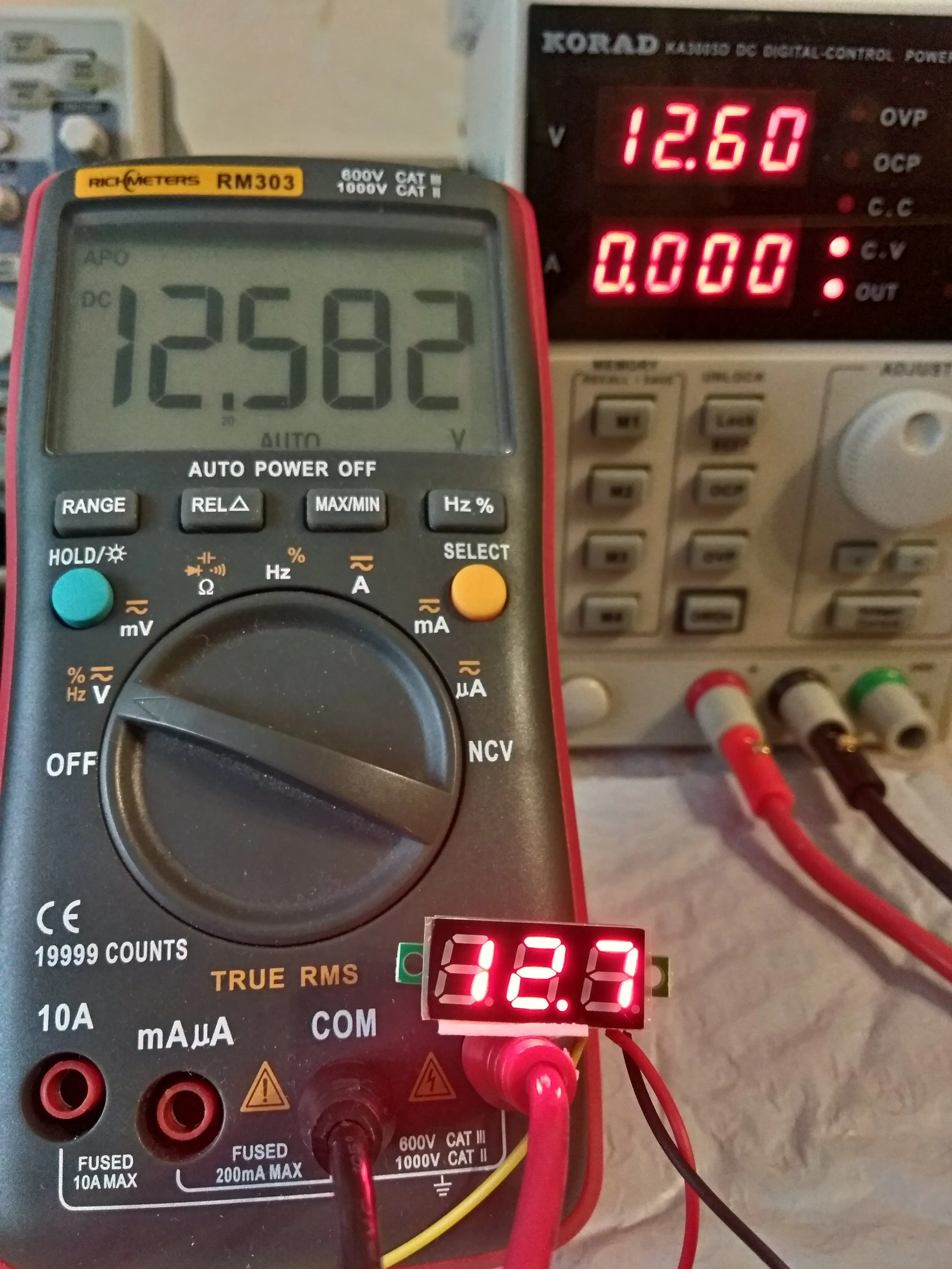 отличный вольтметр. Точность 0,1В на всем диапазоне до 19В. Начинает показывать от 2,6В.