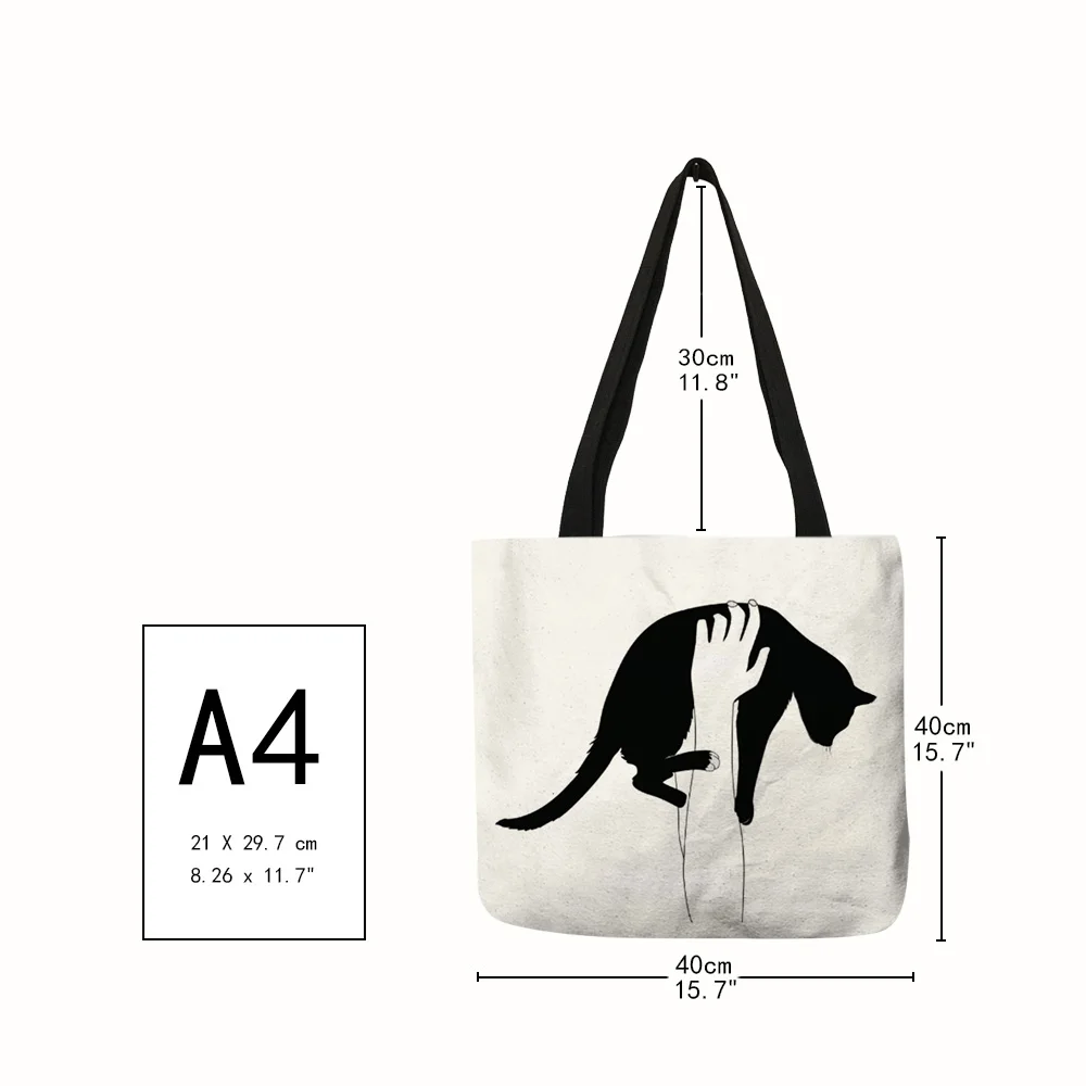 Персонализированные акварельные сумки-тоут с принтом кота для льняной мешок для покупок складные многоразовый тканевый сумки для женщин
