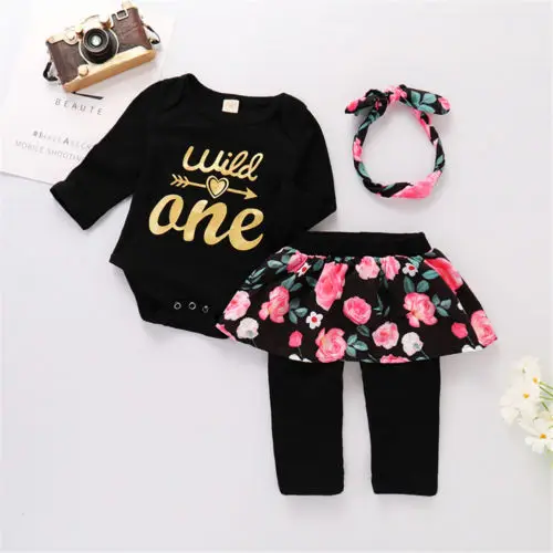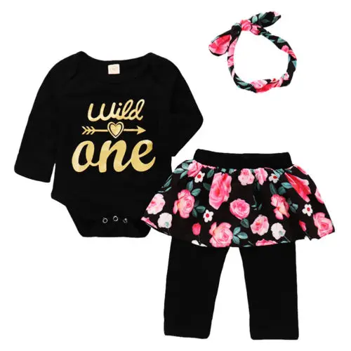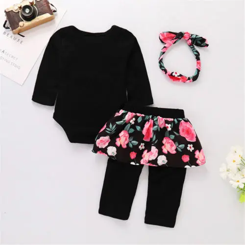 2018 милый комбинезон для новорожденных девочек, топы, юбка с цветочным рисунком, штаны, комплект одежды, одежда для 0-24 месяцев