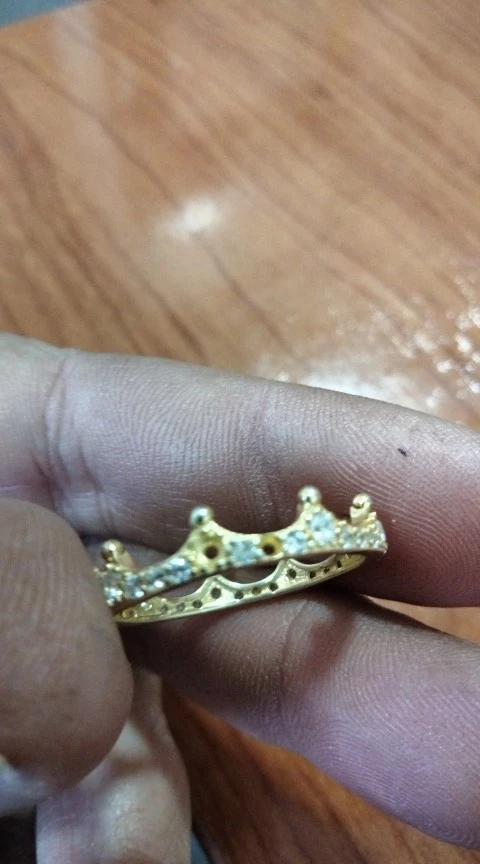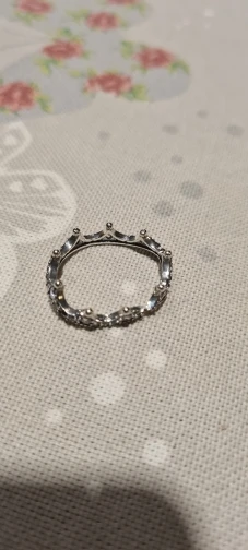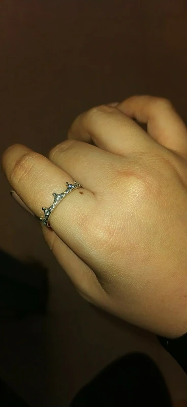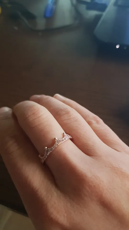 Настоящее серебряное кольцо, Золотой, в форме короны и с белыми кристаллами. ОБЖИМНАЯ/инкрустация и отделка, идеально. Соотношение цена-качество: очень хорошее. Время ожидания и прием продукта: в расчетное время. Условия доставки: упакован в специальный пластиковый конверт для почтовых отправлений на большие расстояния (основная упаковка). Результат: Заколдованная жизнь; D