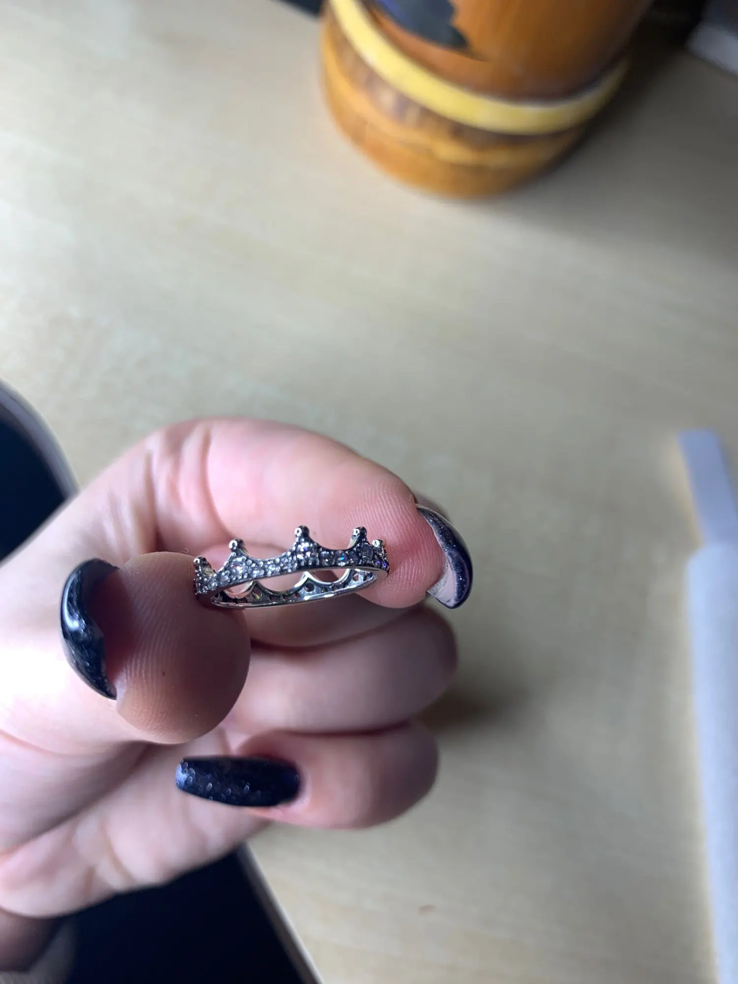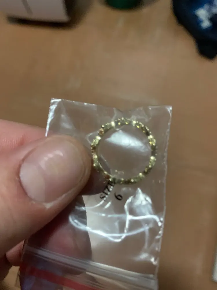 joli bague, malheureusement 1 pierre absente (qui n'était même pas dans le paquet) et une autre qui c'est vite décollée, obligé de la recoller.