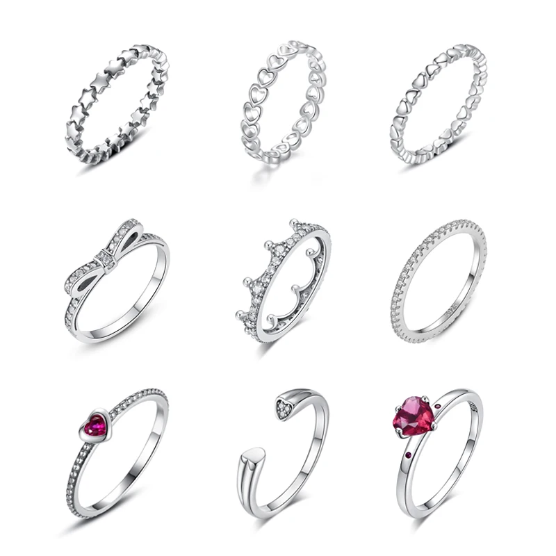 Женское составное кольцо из серебра 100% пробы, с короной, сердцем и звездами