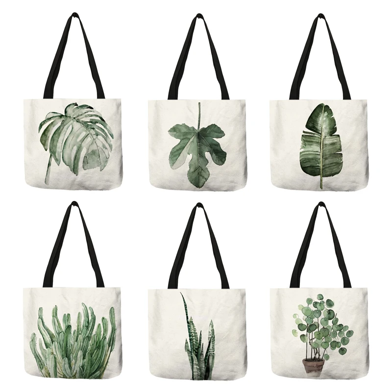 Акварельная Pteridophyte многоразовая сумка для покупок с принтом бананового дерева Сумка-тоут для женщин тканевые сумки Дорожная пляжная сумкаS