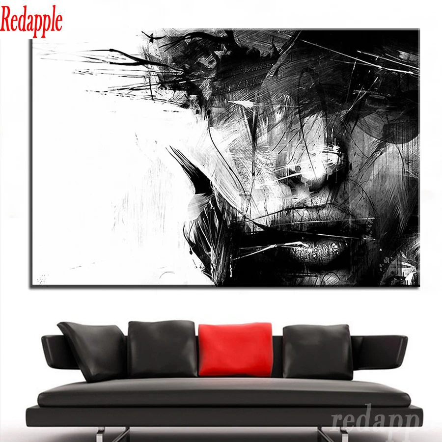 Большой размер, кристальная полная Алмазная вышивка, черно-белая женская Алмазная мозаика для лица, 5D, сделай сам, алмазная живопись, искусство для девушек