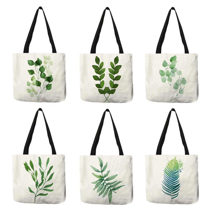 Экологичная многоразовая сумка для покупок с зеленым растительным принтом, женские сумки-тоут, повседневные сумки, студенческие дорожные пляжные сумки