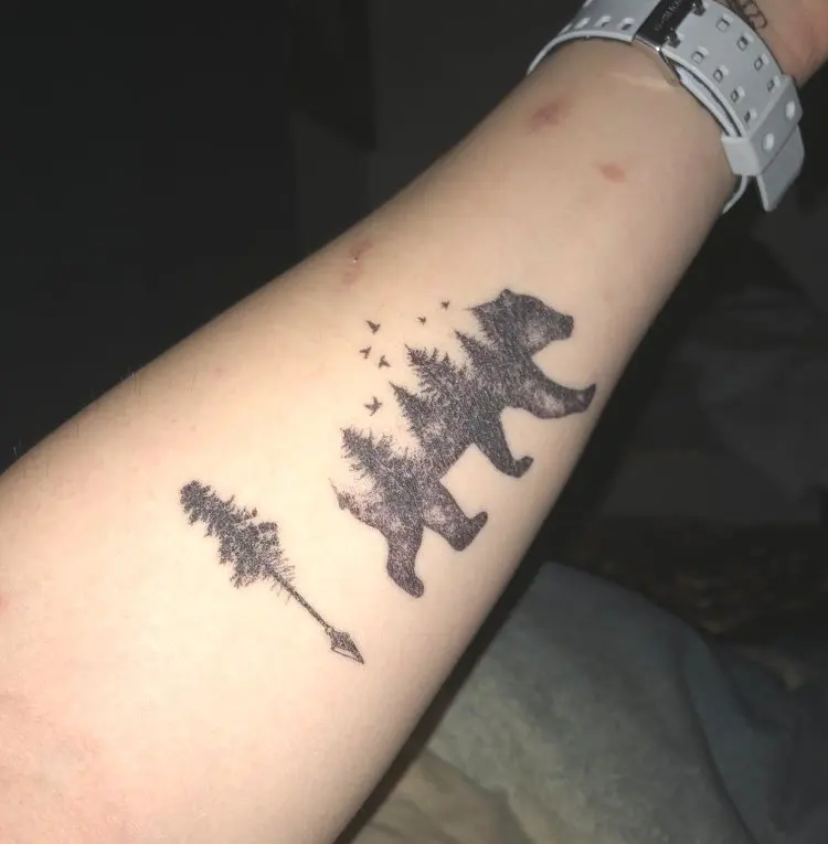 Водонепроницаемая временная татуировка Сибирский лес Медведь Дерево...