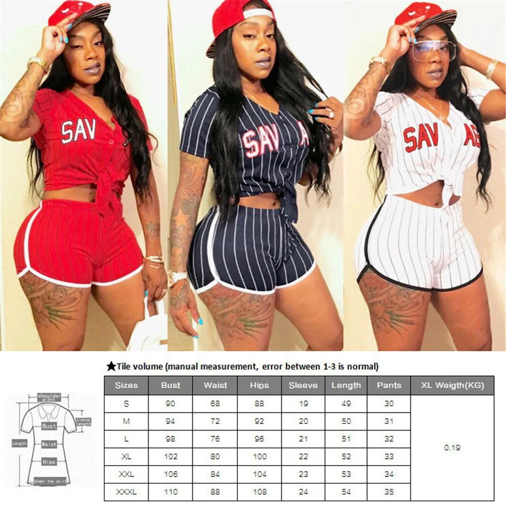 Новинка 2018, женские бейсбольные майки с коротким рукавом, бейсбольные рубашки в полоску с буквенным принтом, топ с v-образным вырезом, сексуальные шорты, бейсбольный костюм, набор