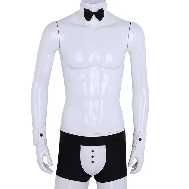 # M-XXL, 3 шт., мужской смокинг для официанта, нижнее белье, костюм, трусы-боксеры, нижнее белье с галстуком-бабочкой, воротник и браслеты