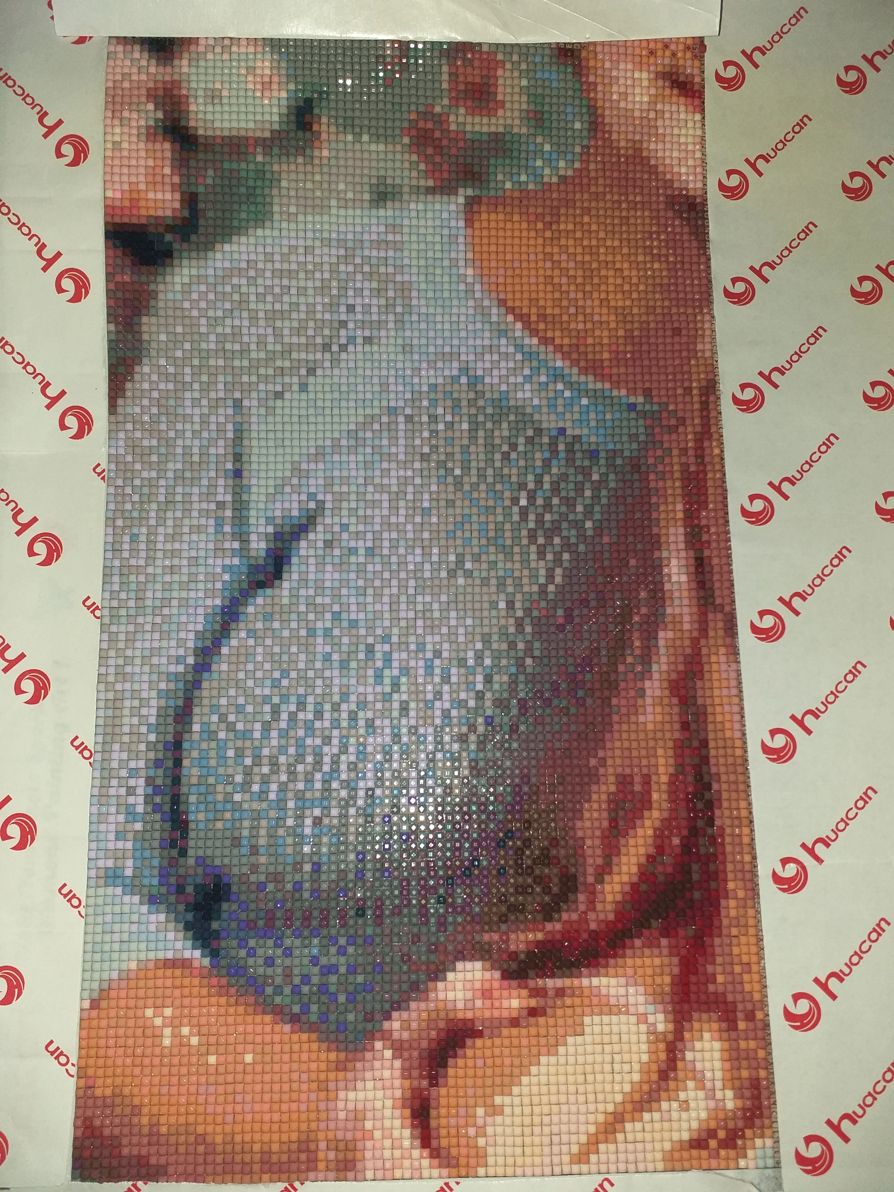 цвета подобраны странно. где было зелень листва на заднем плане всунули черный цвет.(да пакет просто огромный черного, решили не заморачиваться походу). достаточно много цветового мусора местами на лицах выходит. клеевой слой гавно полное, вроде мягкий клеится. но если попытаться свернуть, то куча страз выволиться. на других картинах такого не встречали. даже если лежит картина на столе стразы сами по себе поднимаются местами. Раскатываешь скалкой с огромным усилием, через день, что то да и вылезет. Думаю тут больше не закажим, хотя хотели еще 3 штуки. продавец отвечал на вопросы оперативно.