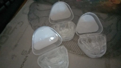 Начала использовать первый. Края r грубые и не очень удобные для длительного ношения. Почти невозможно носить всю ночь, потому что это сделало мою горло настолько сухой, что мне пришлось снять их. Я думаю, что это может стать лучше, как только мои зубы адаптируются к этому. Надеемся на позитивные изменения.