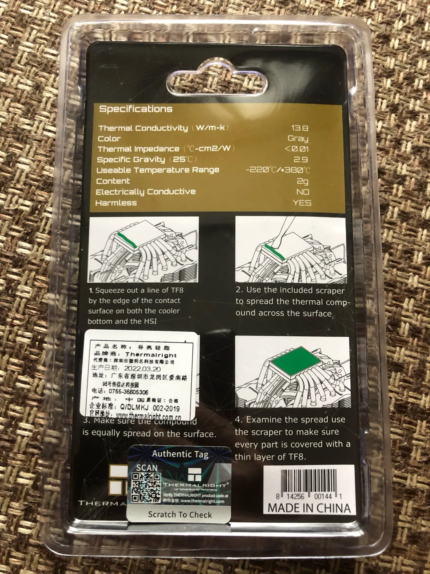 Термопасту получил, пока не пробовал, надеюсь будет хорошей, позже дополню отзыв, судя по форумам и отзывам одна из лучших паст, изготовлена судя по этикетке 20 марта 2022 года, ниже 2019 это сертификат лицензии так что не путайте, дата выше на этих пастах, я специально списывался с продавцом и он на все вопросы ответил и прислал фотографии, так что продавец супер, спасибо