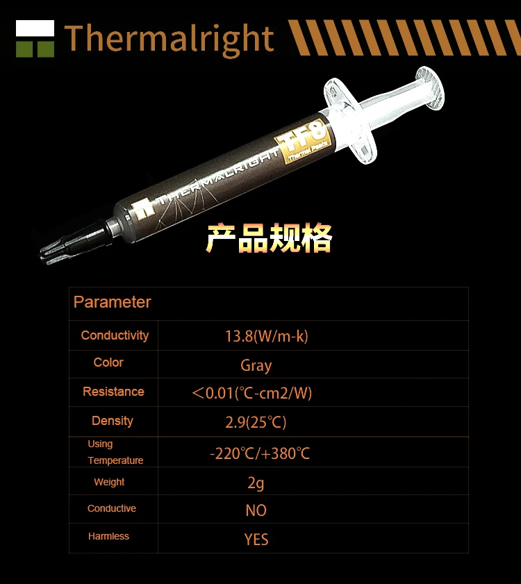 Тепловая правая термопаста TF8 для ЦП 13,8 ВтмК проводимость, содержание 2 г, смазка для карты графического процессора ноутбука, силиконовая паста