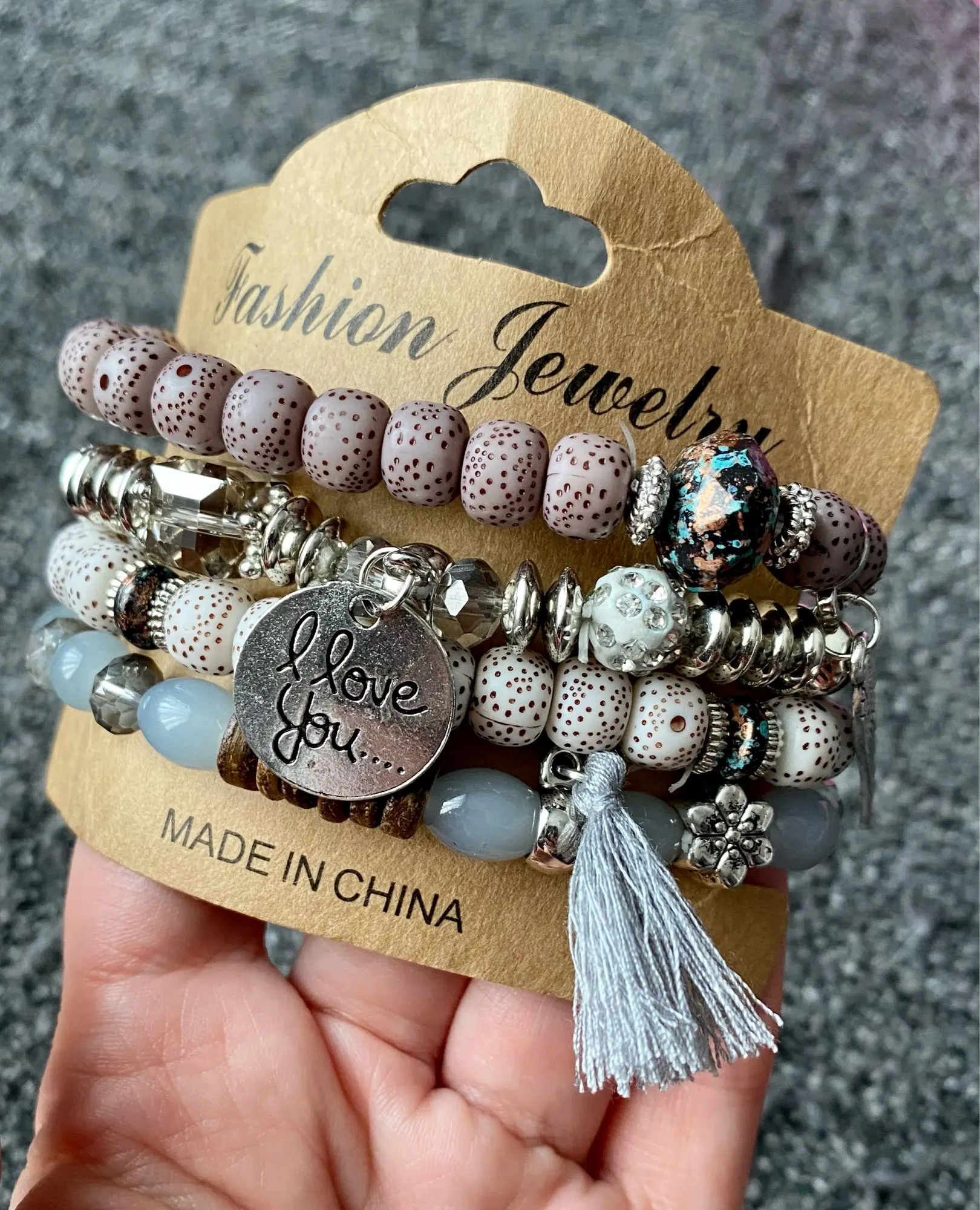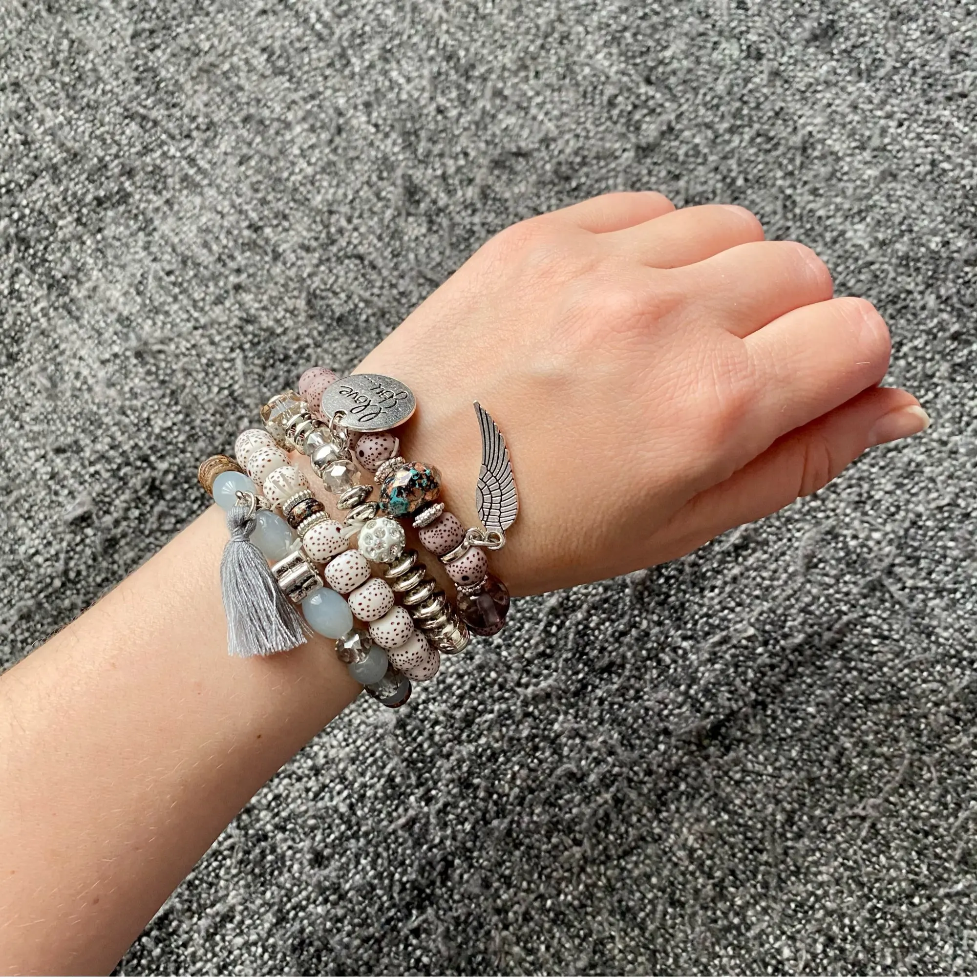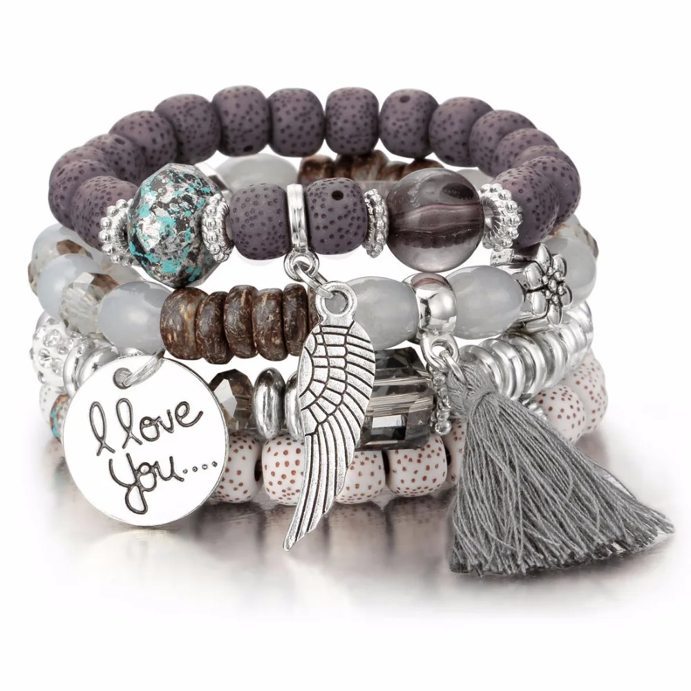 4 шт.компл. Крылья Сердце сплав кулон бисер богемные Браслеты Женские lava браслет с камнями Браслеты для вечерние