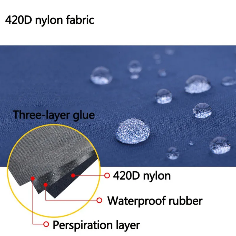 Ткань воду не впитывает. Капли воды, падающие из крана, скатываются как с полиэтилена. Есть пожелание: пряжку для стягивания, верхней кромки, снабжать зубцами блокирующими скольжение ремня!