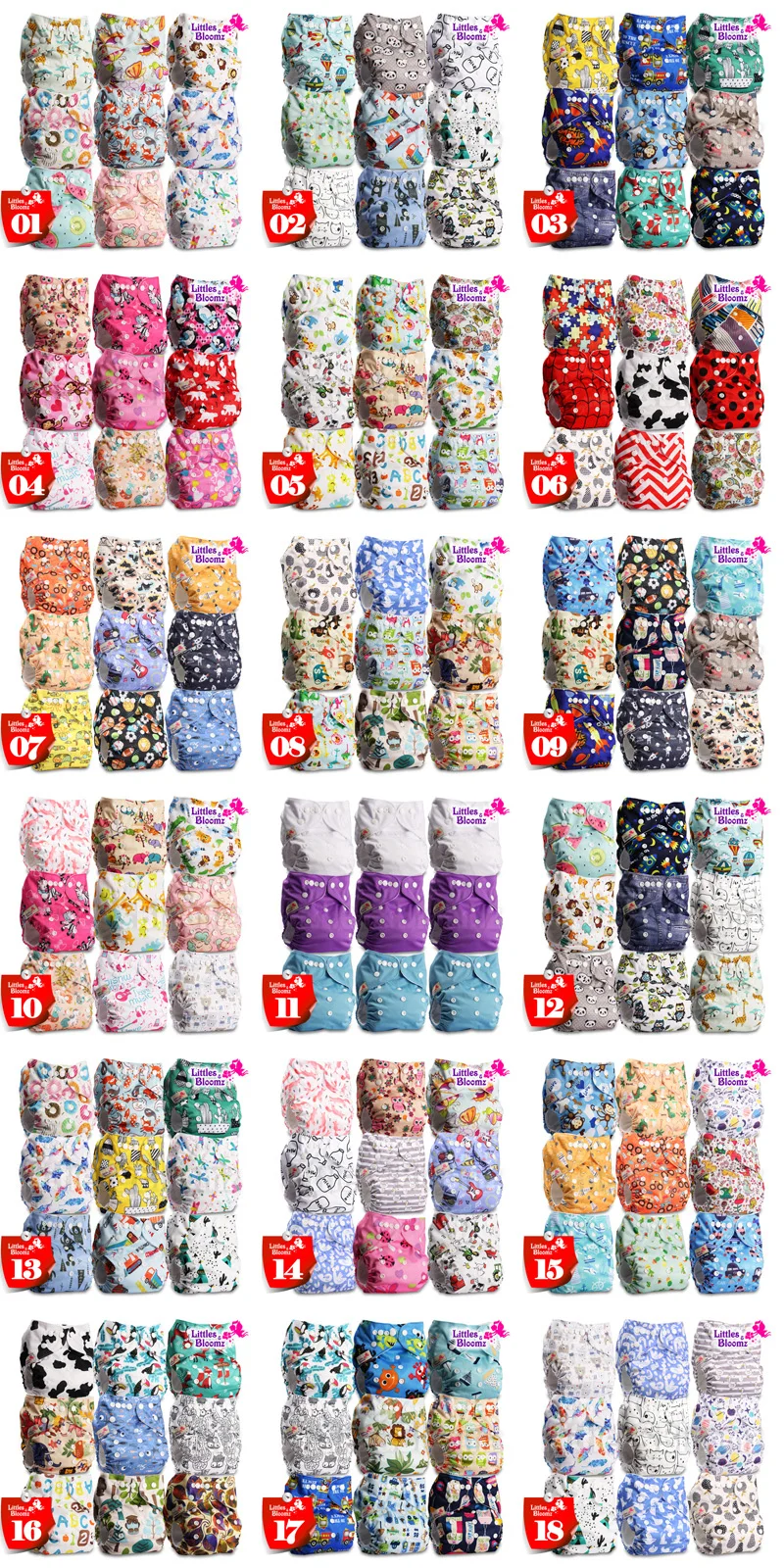 Детские многоразовые тканевые подгузники Littles Bloomz, 9 шт.компл., 9 подгузников и 0 вставок в одном наборе