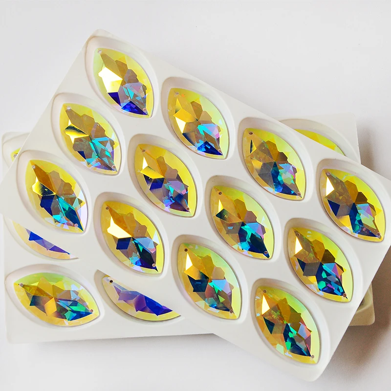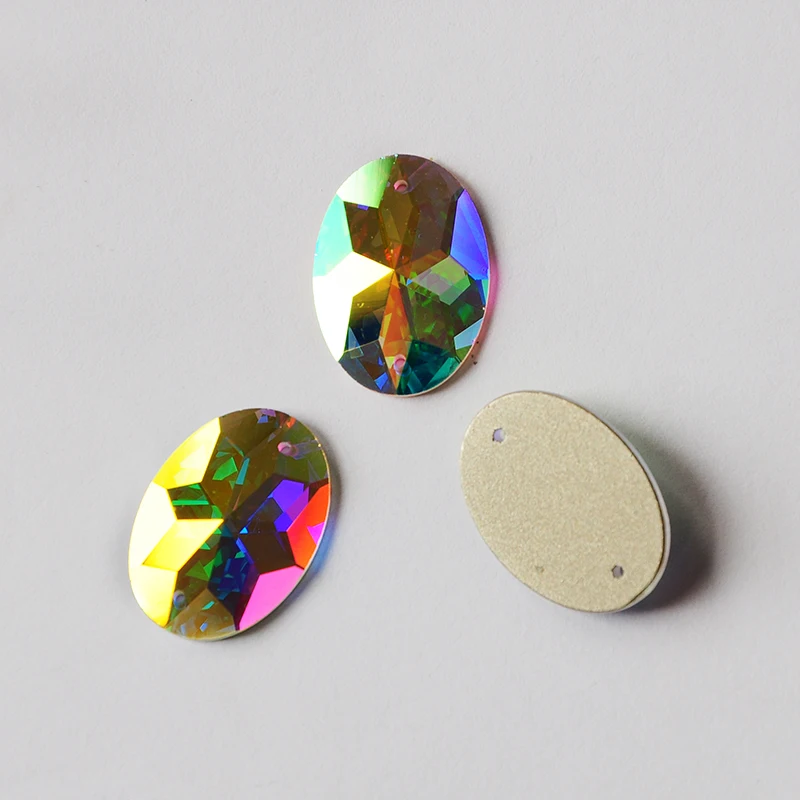 Большой Кристалл AB 2 отверстия Пришивные зеркальные стразы с плоск...