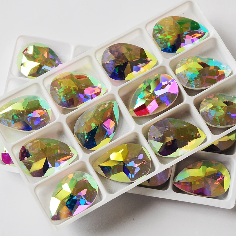 Зеркальные Кристаллы Стразы s AB Drop Sew-on Stone в форме груши Ст...
