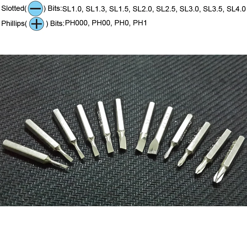 Примите к сведению, что Эти биты не включают драйвер Биты отвертки подходят для гнезда отвертки H4.0 или внутреннего диаметра 4 мм, а затем хорошо работают. Подходит для почти отвертки, которая имеет H4.0 или внутренний диаметр 4 мм разъем, пожалуйста, убедитесь, перед покупкой