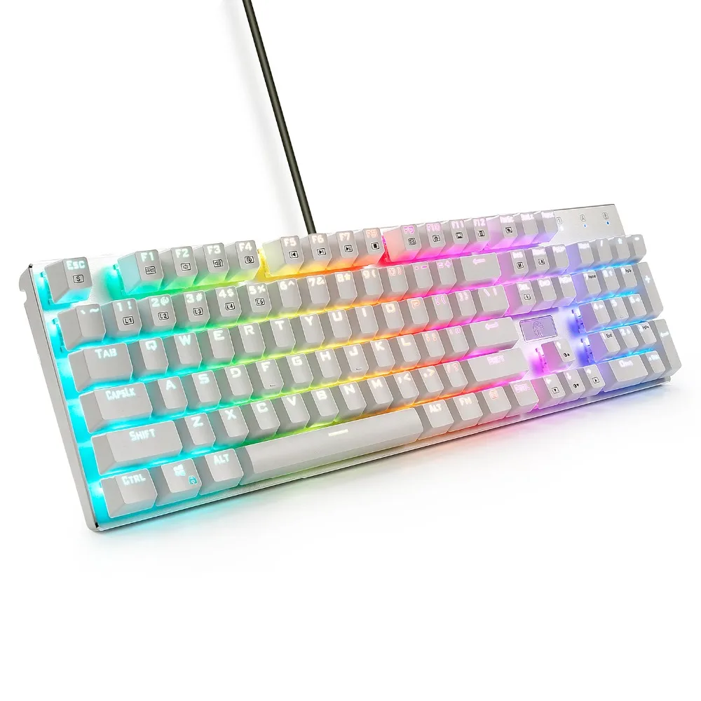 USB Проводная Механическая игровая клавиатура со светодиодной RGB-подсветкой, E-yoeo коричневая алюминиевая полноразмерная клавиатура с защитой от фиктивных нажатий на 104 клавиш