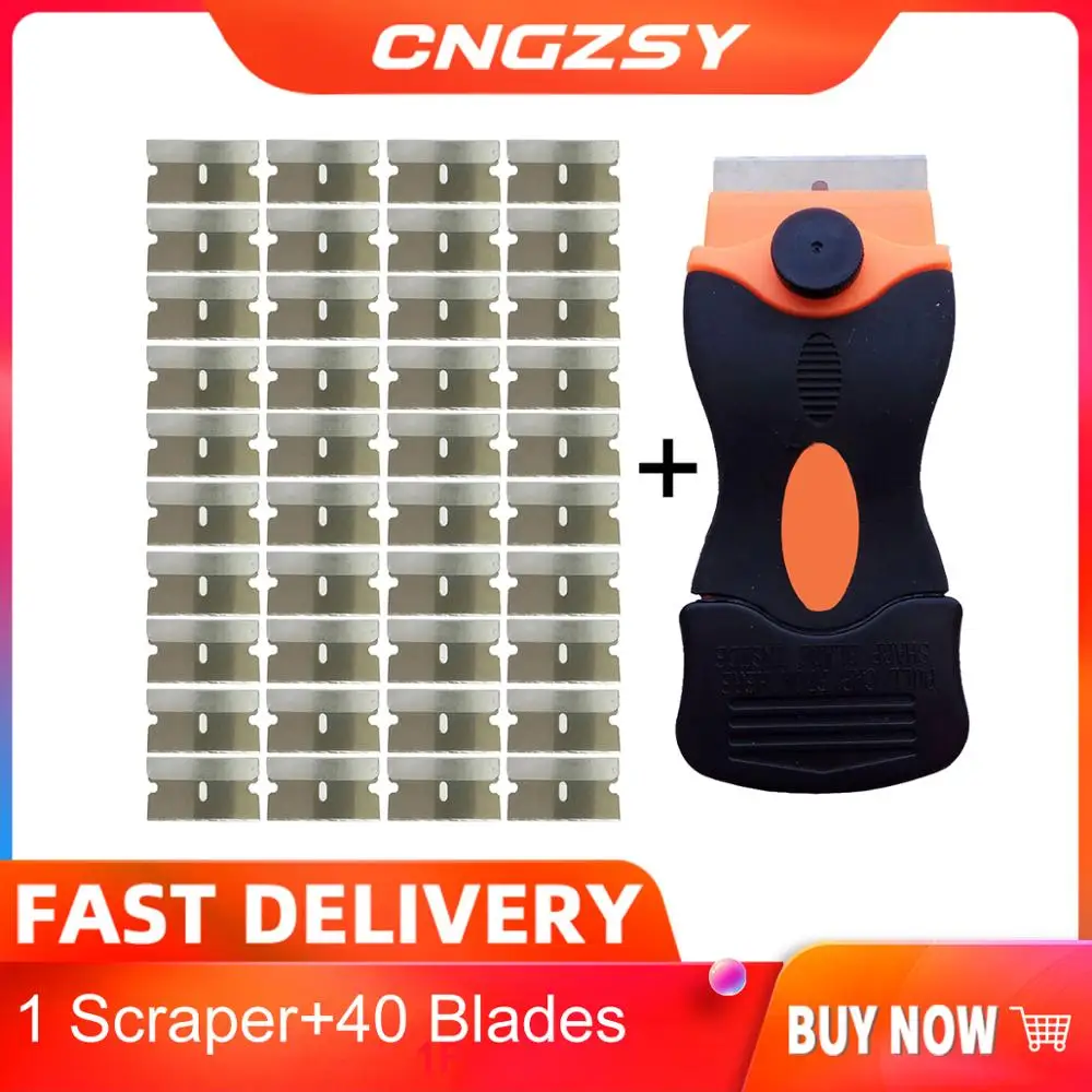 Скребок CNGZSY для очистки стекол, старые клеевые Стикеры, лопатка, керамическая стеклянная духовка, чистящее средство для краски + 40 Металлических Лезвий, тонировочные инструменты для автомобиля E12 + 40 м